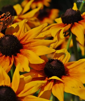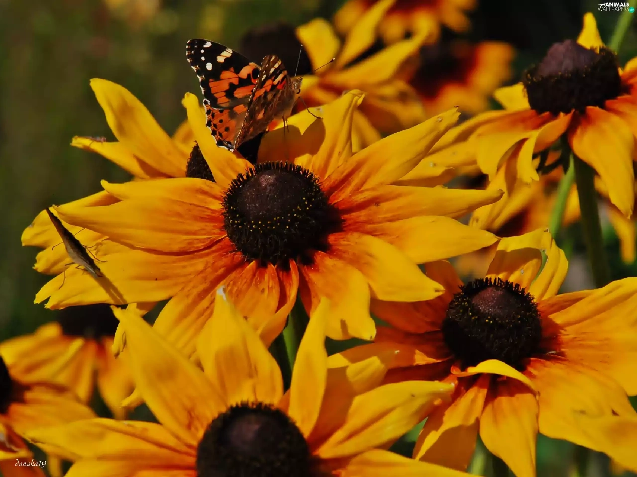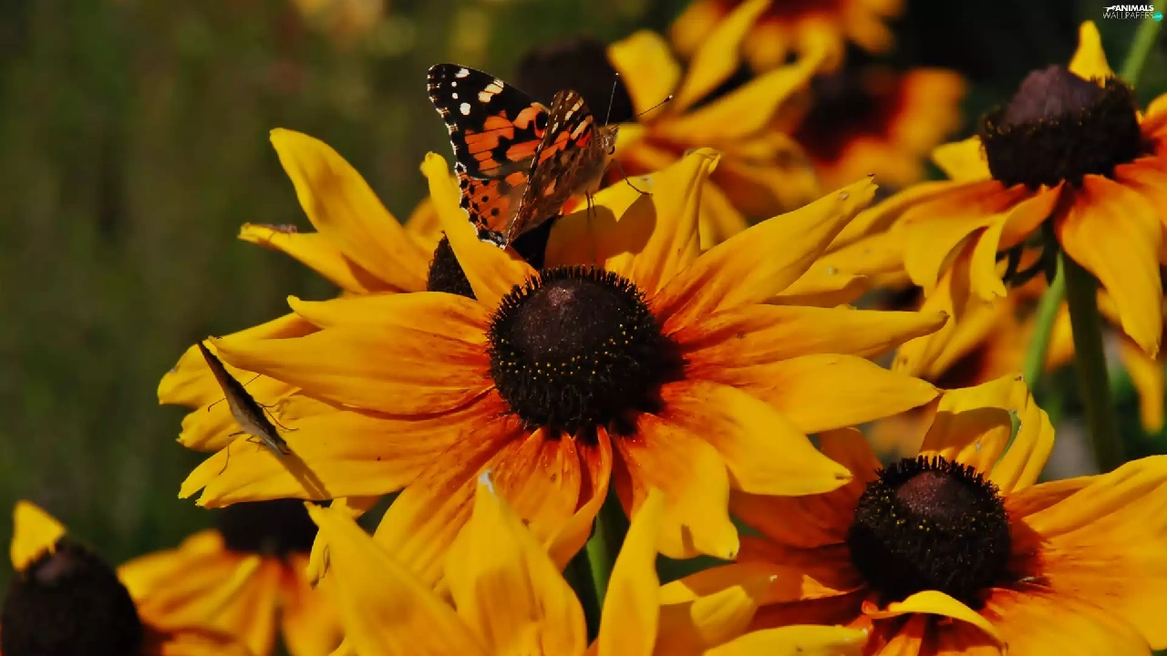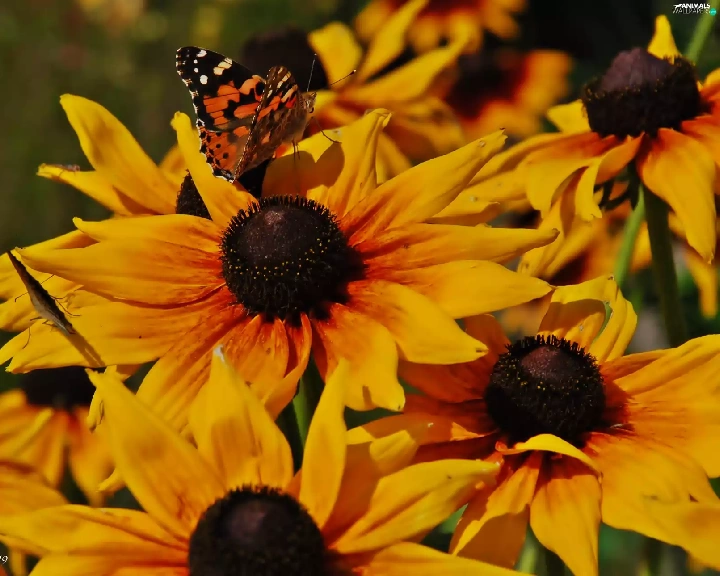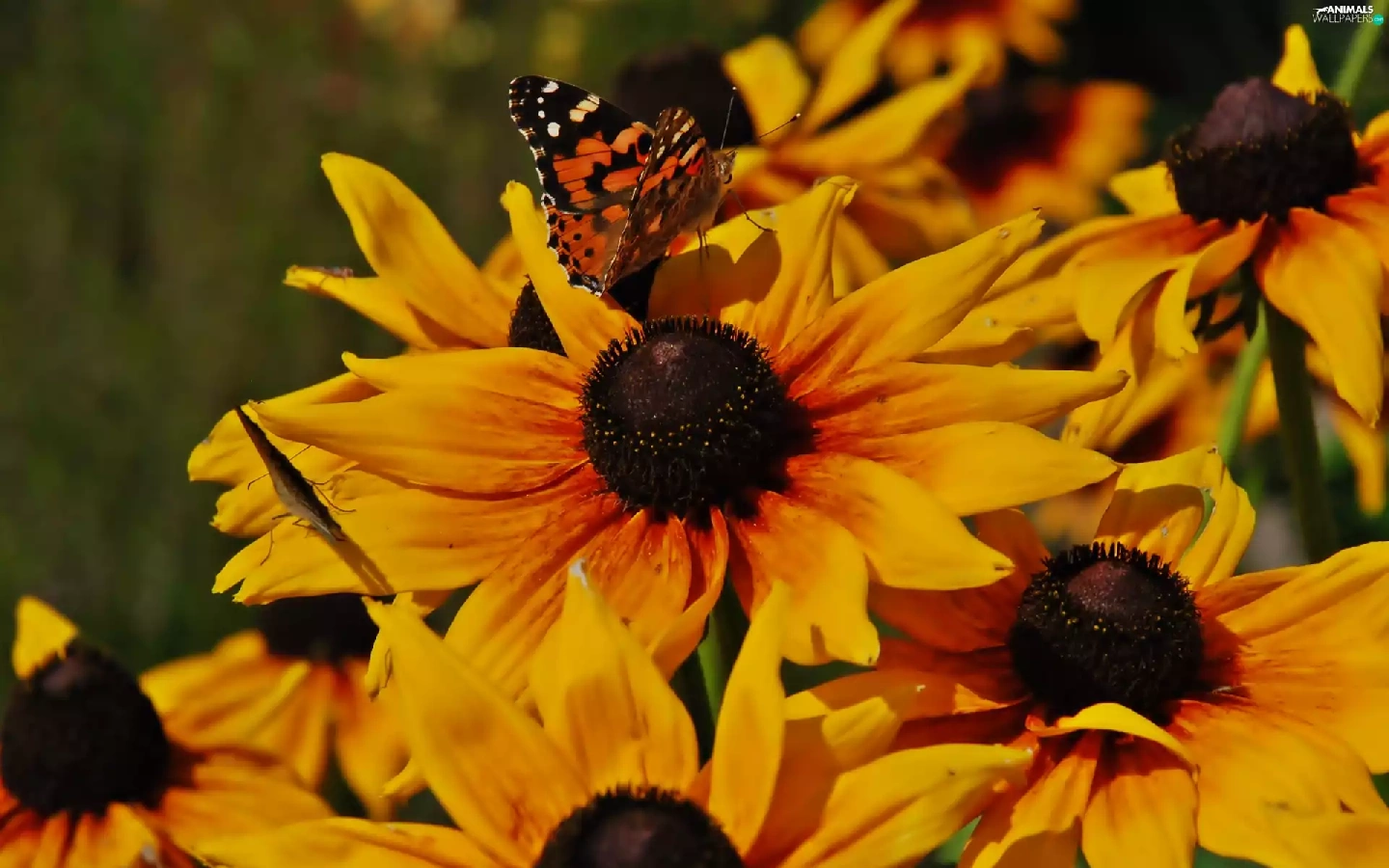 undine, Cardui, Rudbekie, butterfly, Flowers