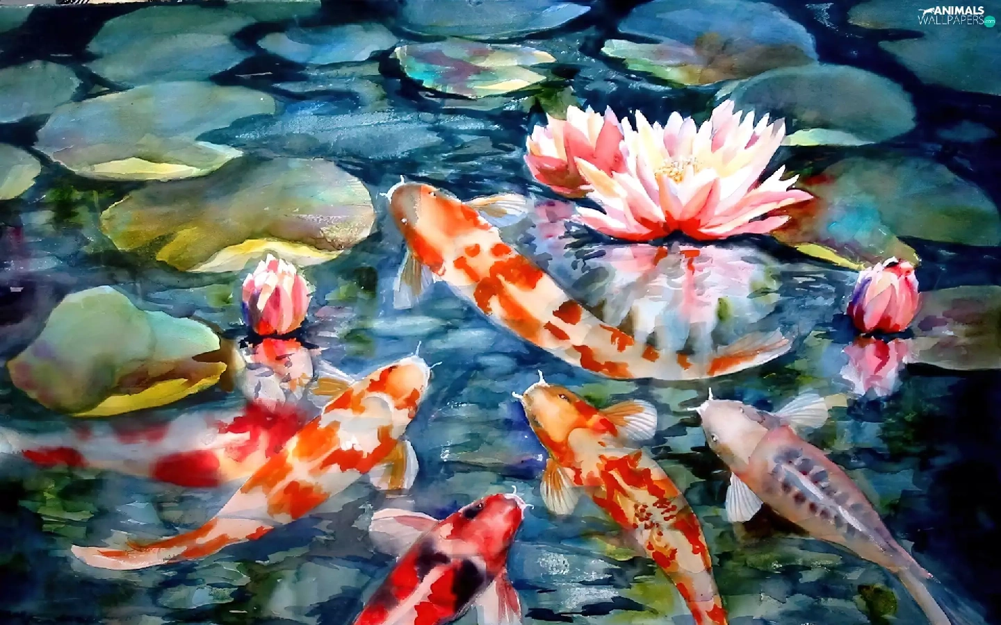 lilies, water, Koi Carp, Pond - car, fish