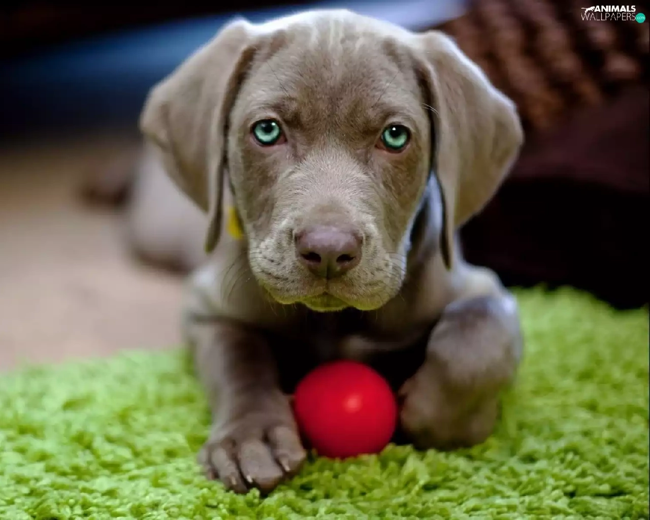 Ball Weimaraner, Puppy, carpet