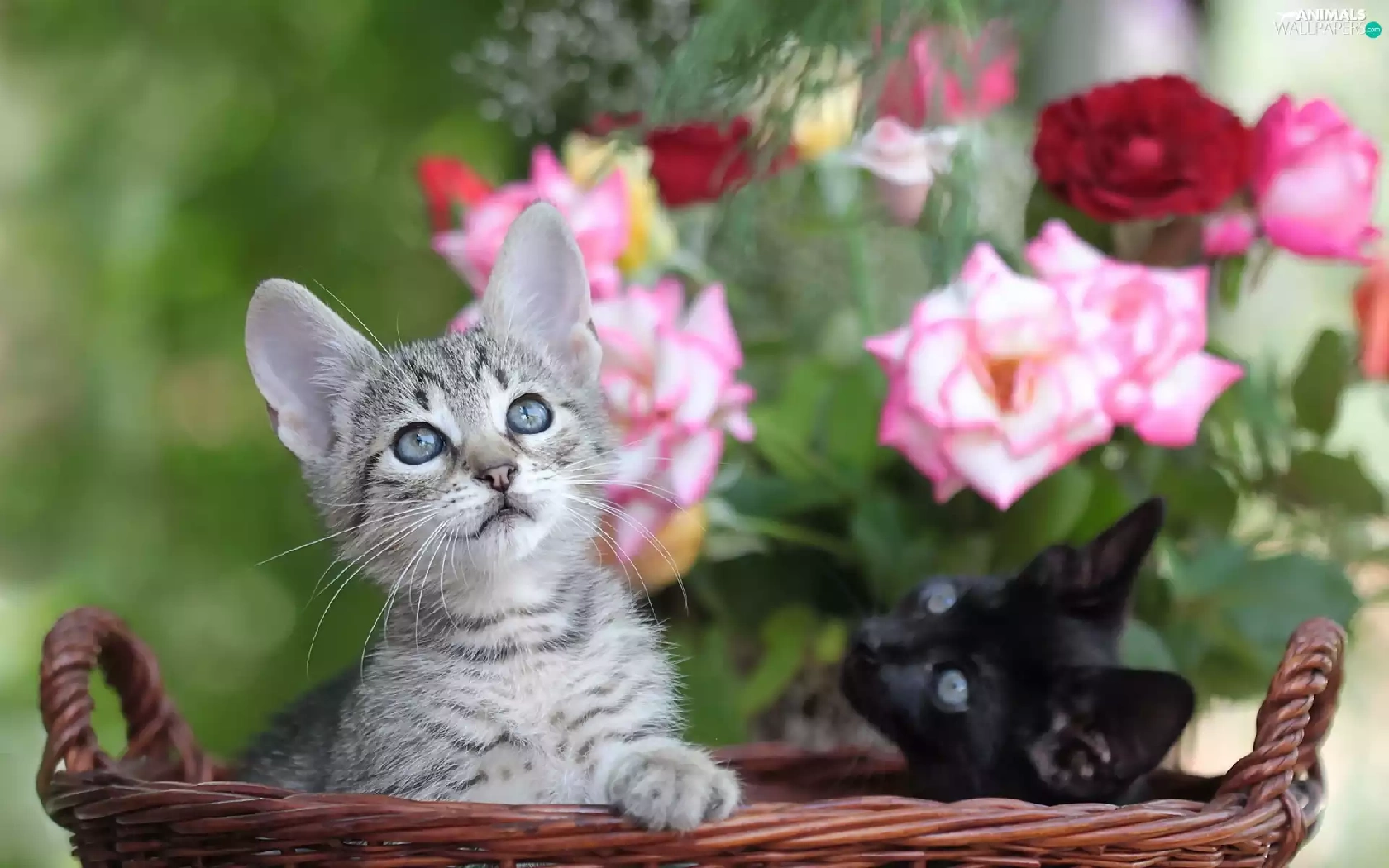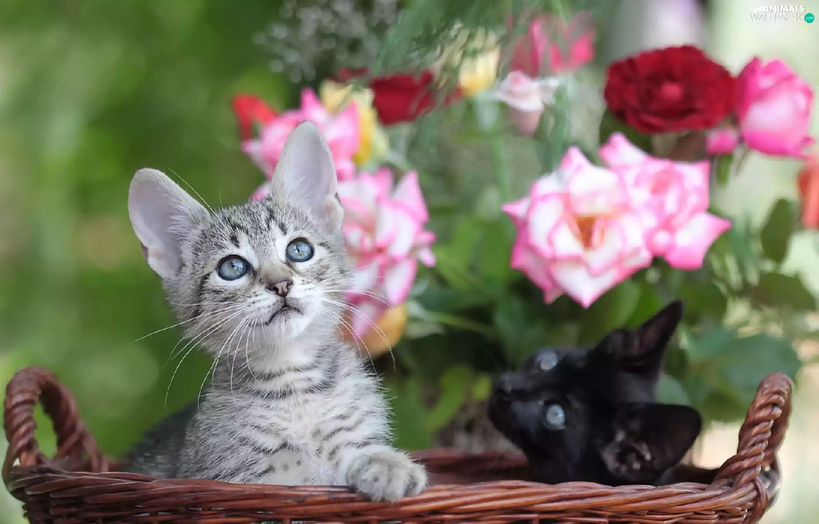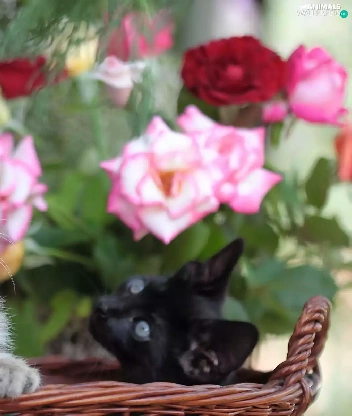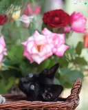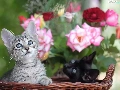 Two cars, basket, roses, puss