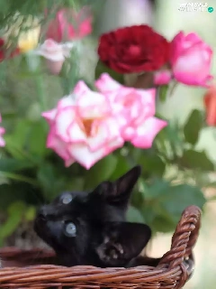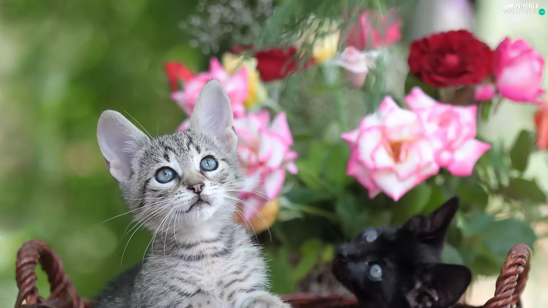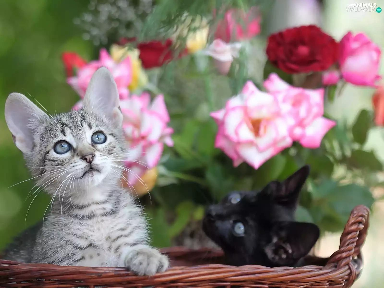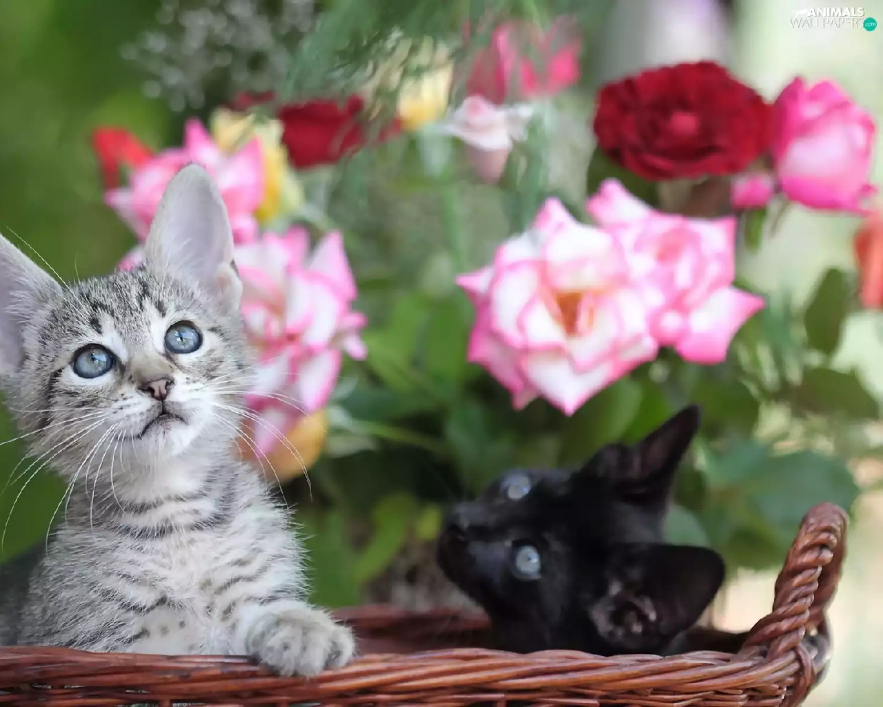 Two cars, basket, roses, puss