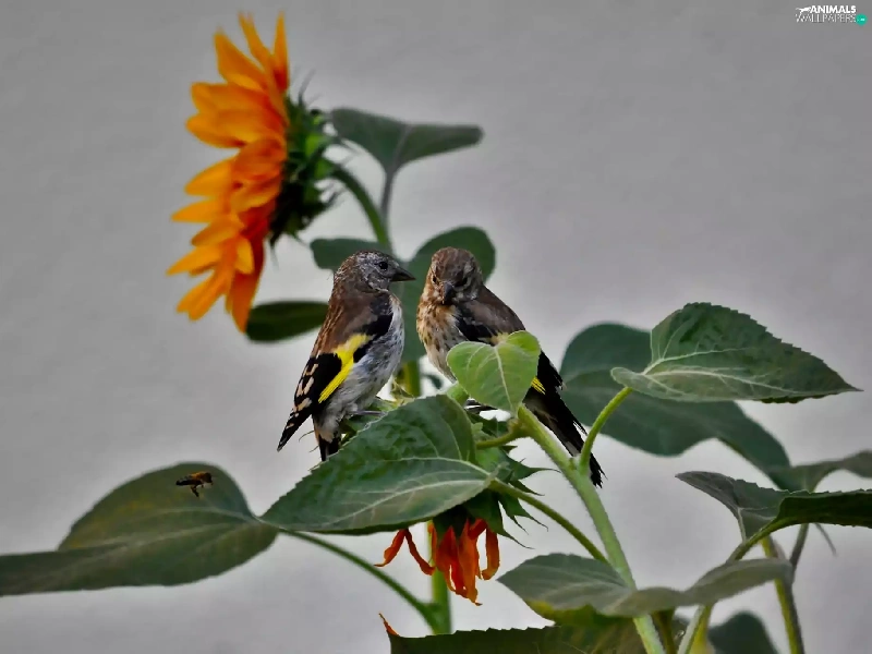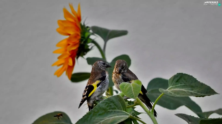 birds, Sunflower, Two cars