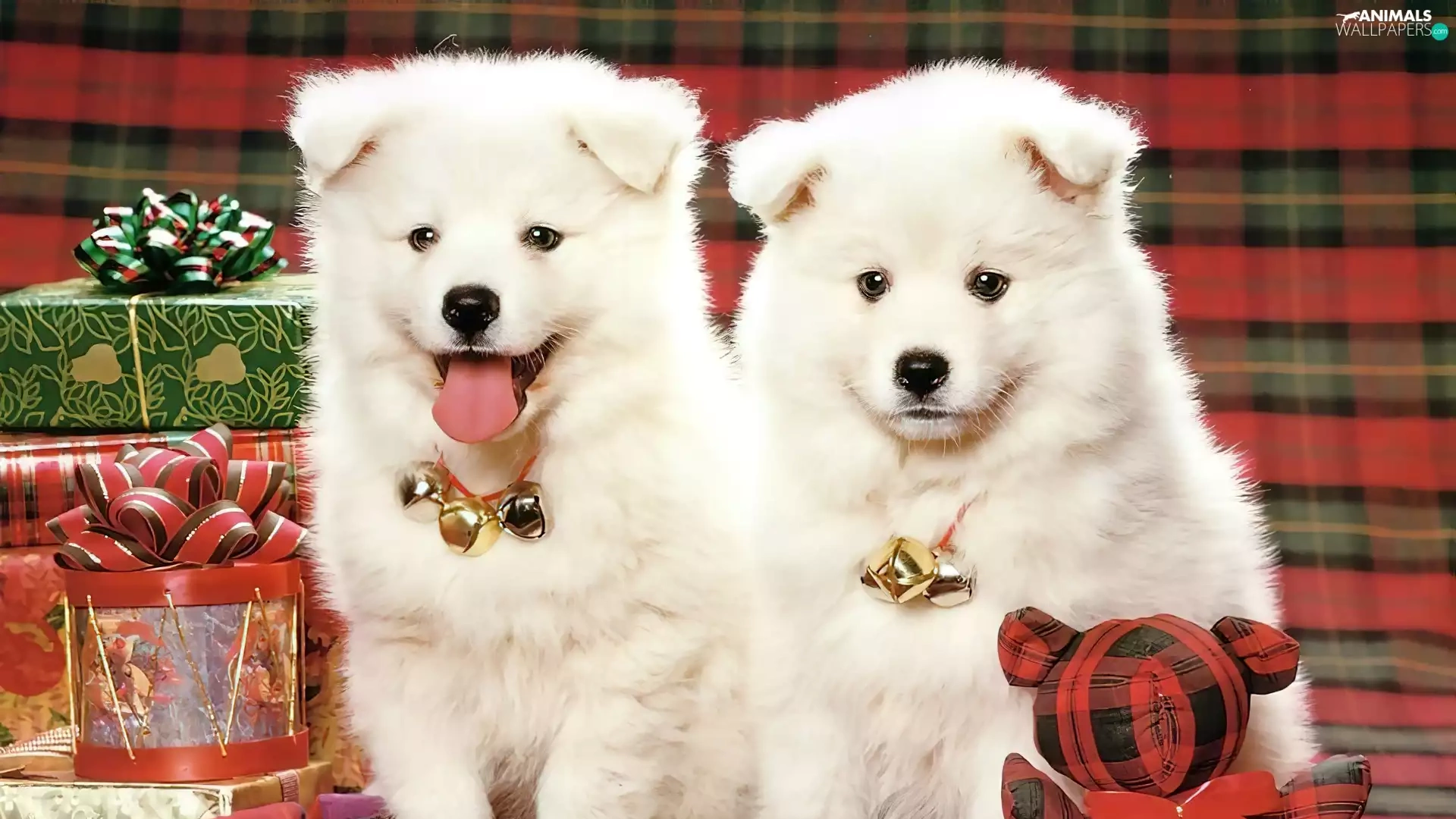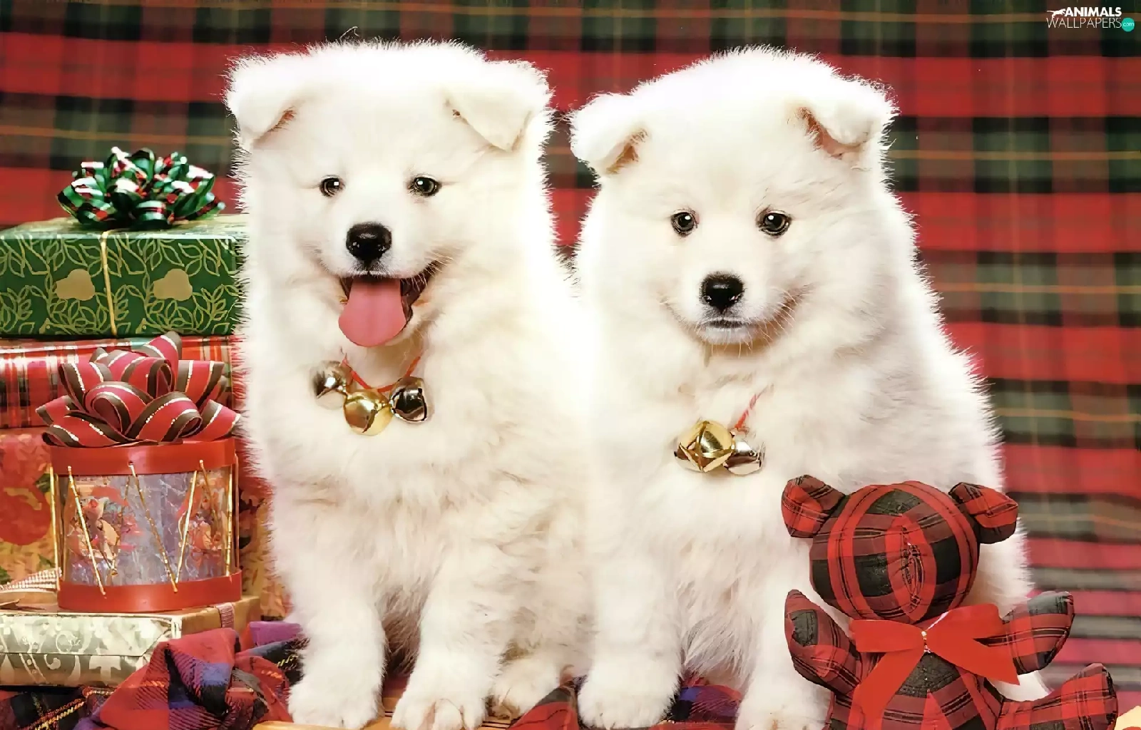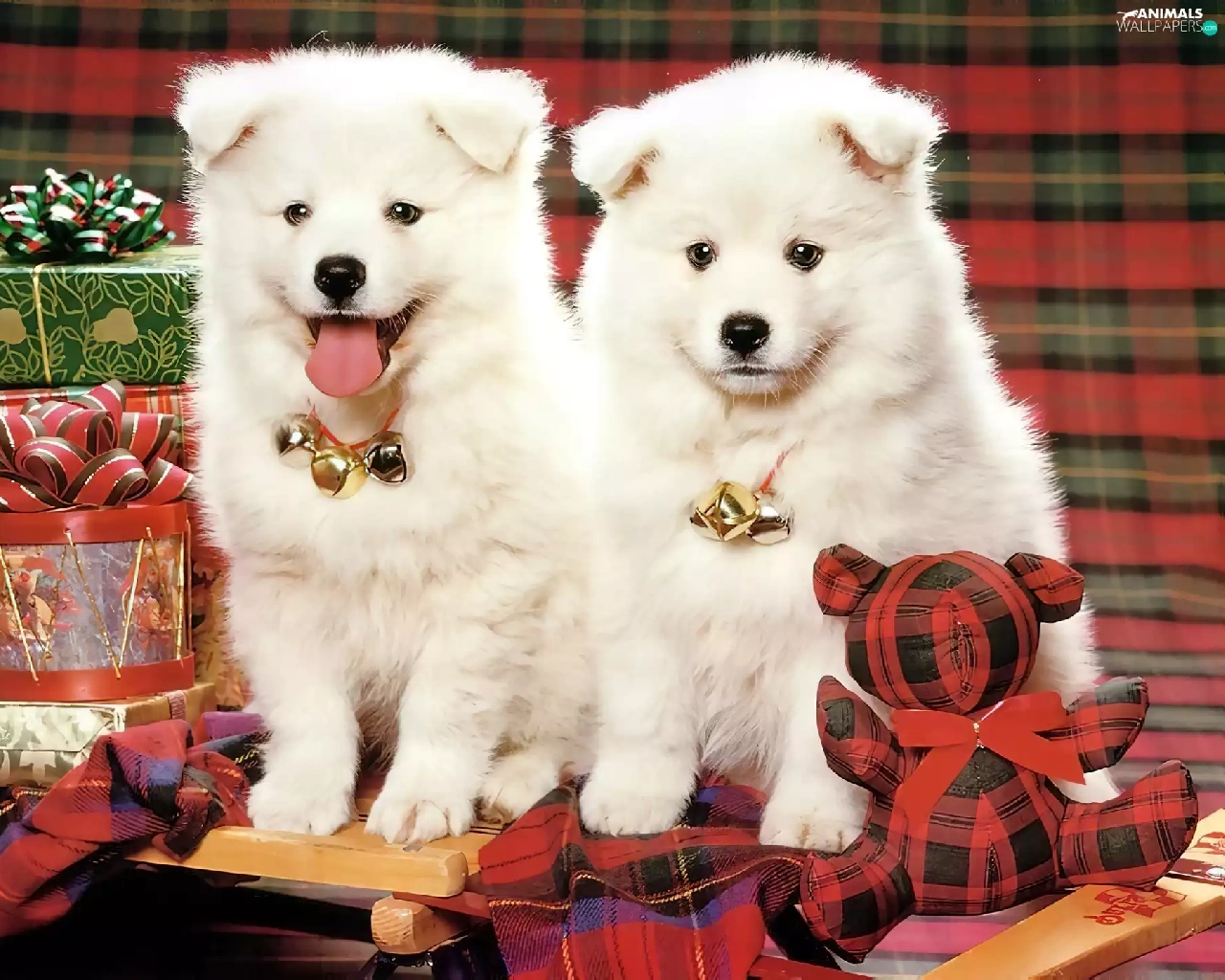 Two cars, christmas, gifts, puppies