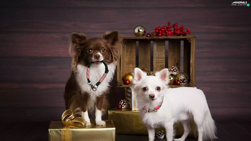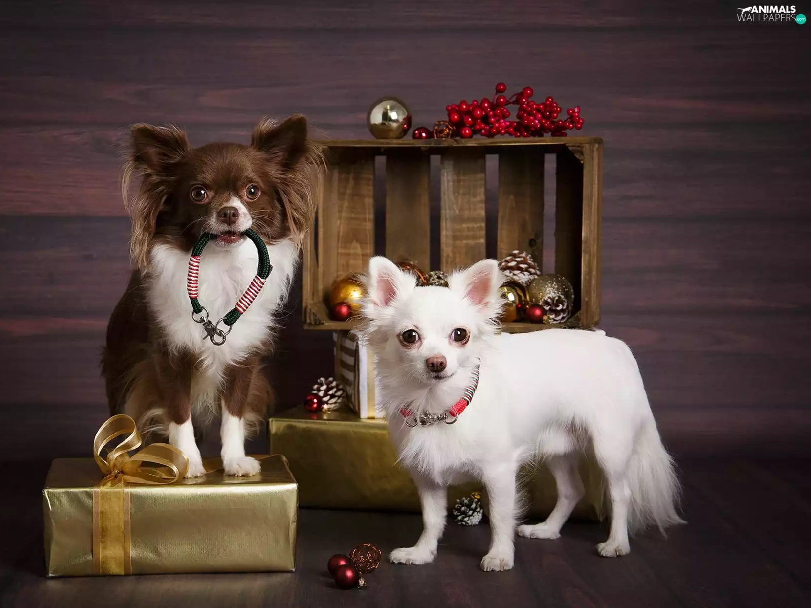 gifts, baubles, Dogs, Long-haired Chihuahua, Two cars