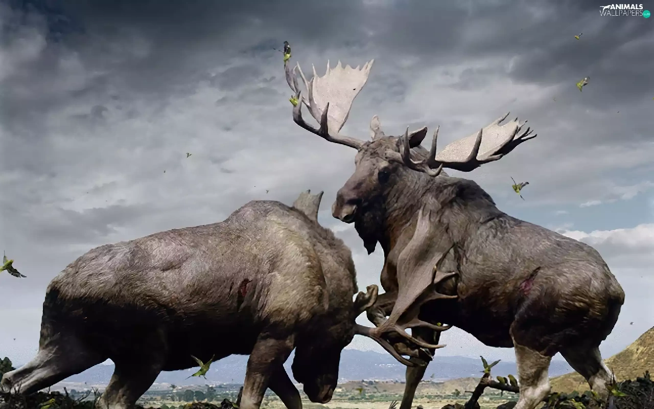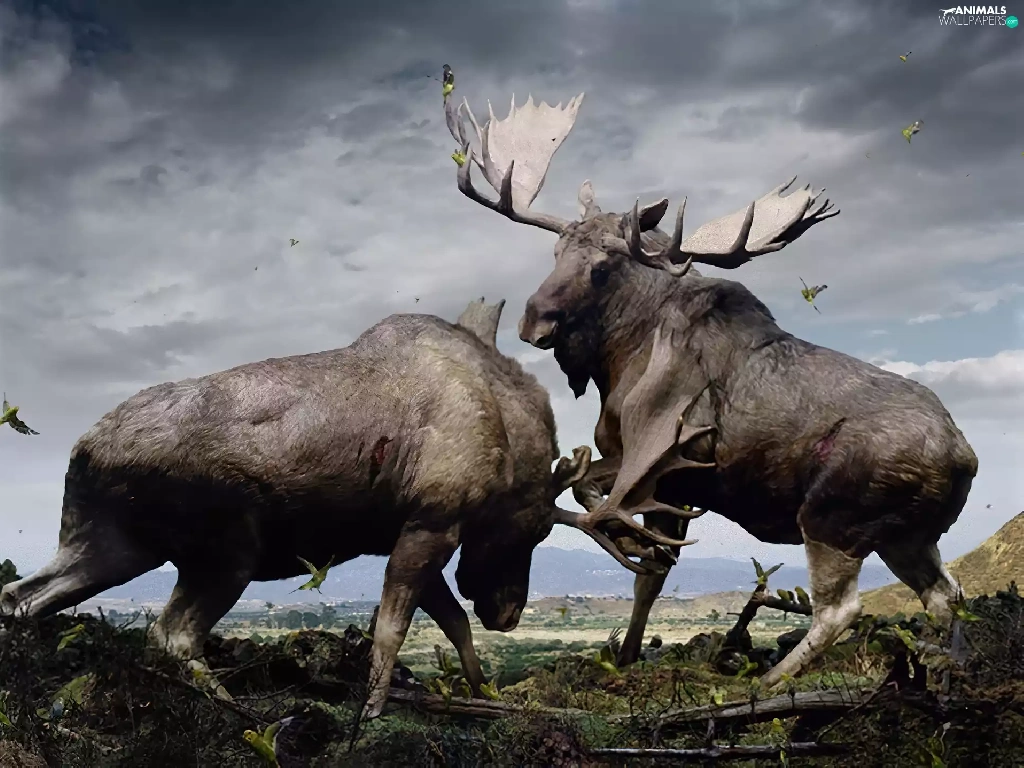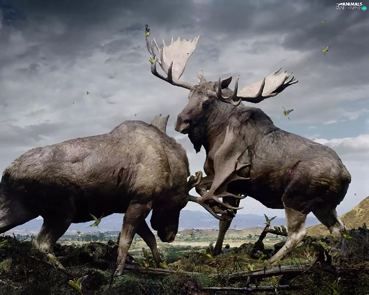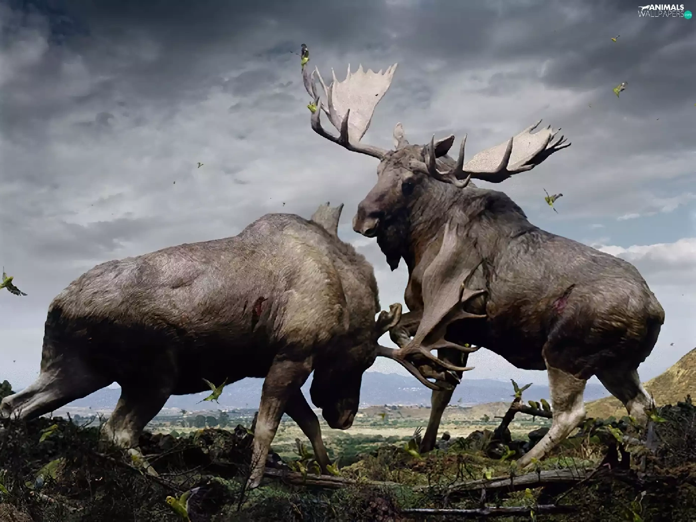 elks, Fight, Two cars