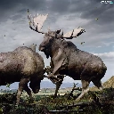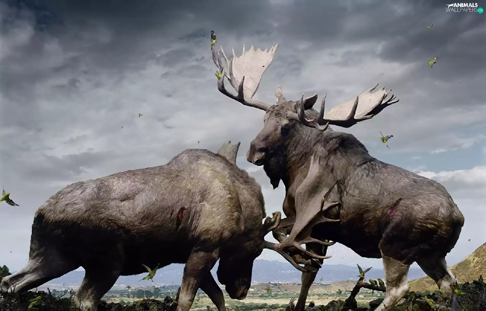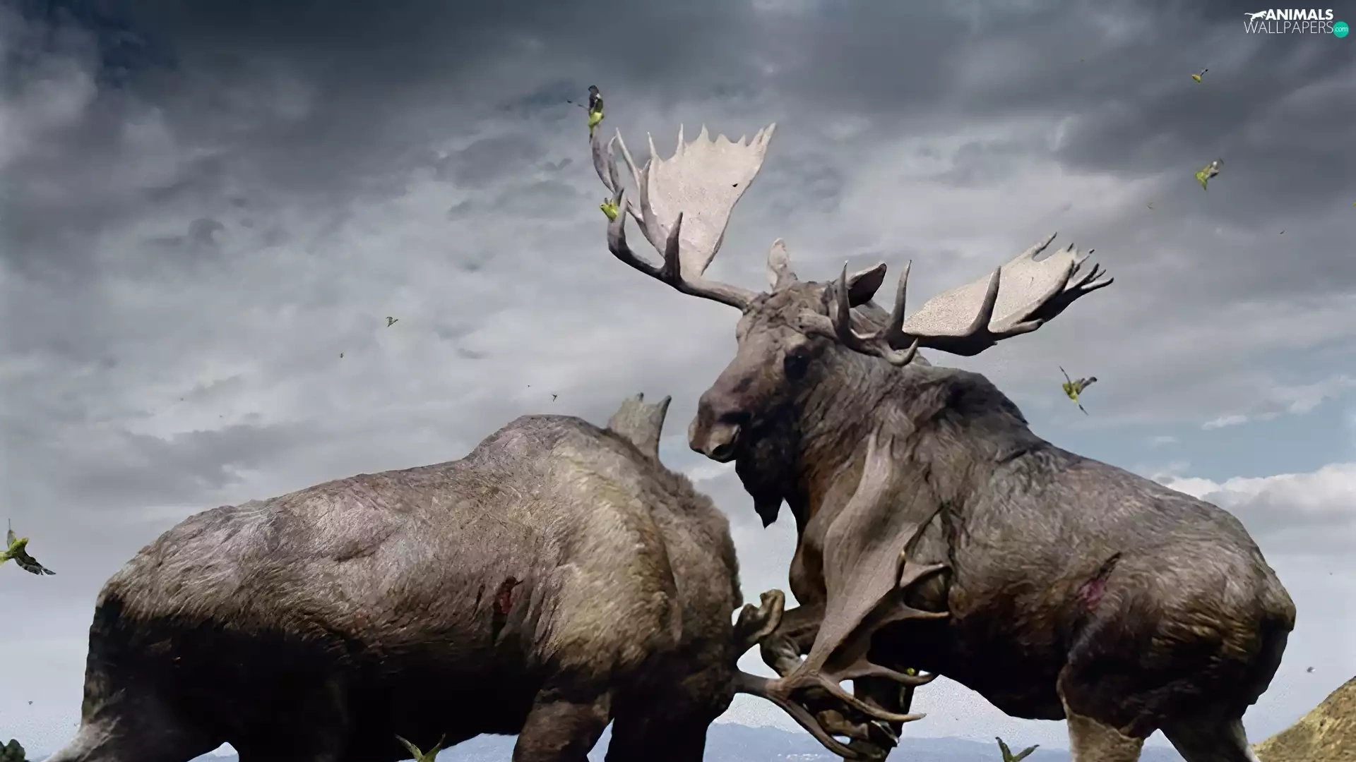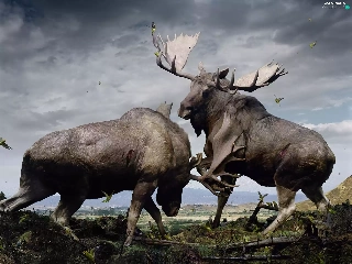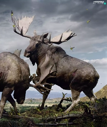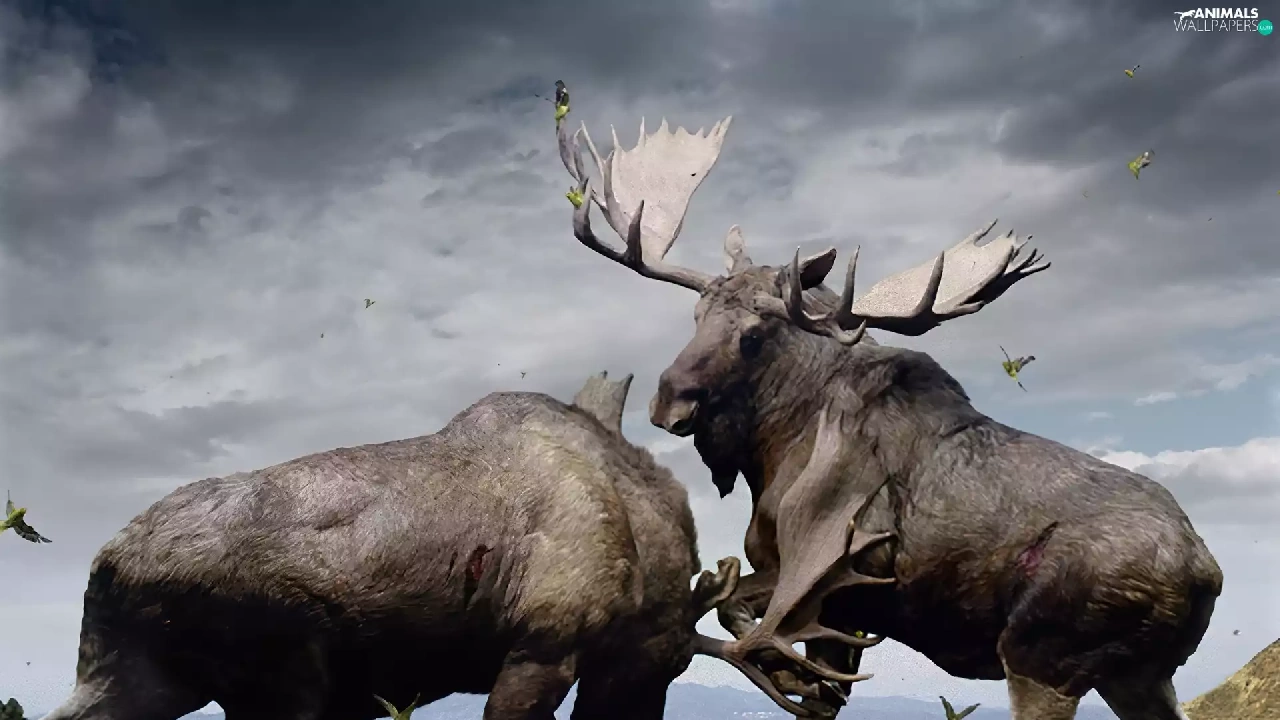 elks, Fight, Two cars