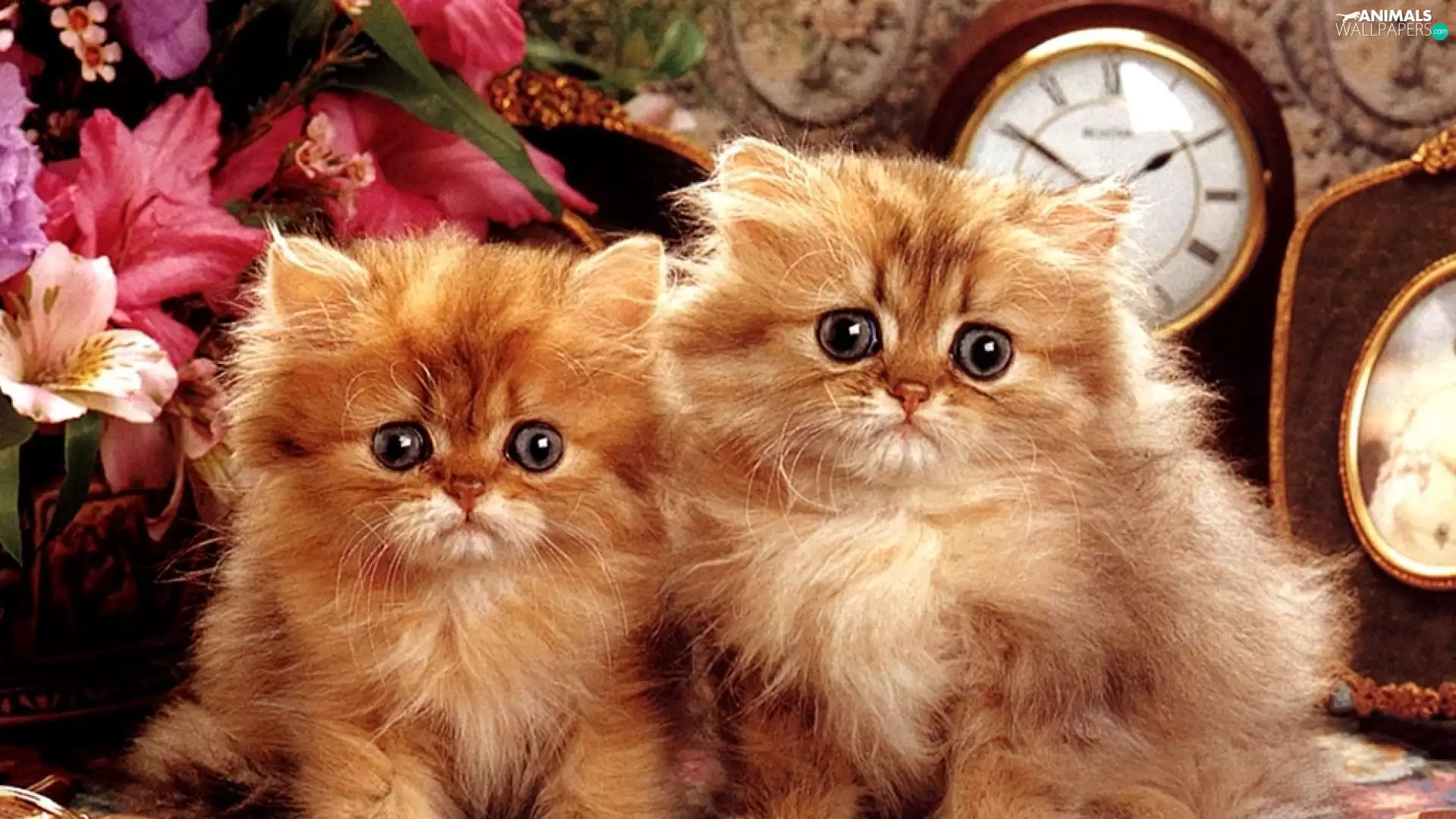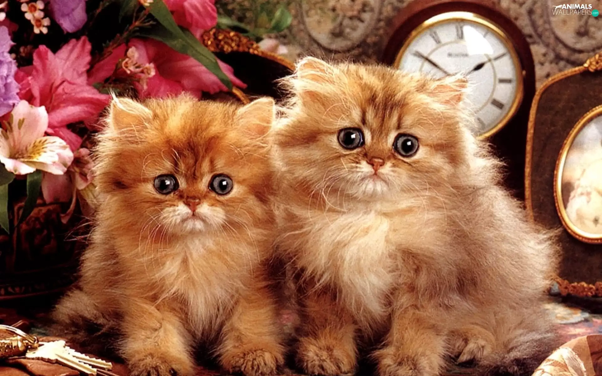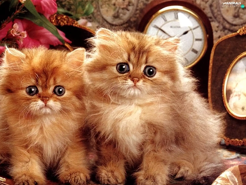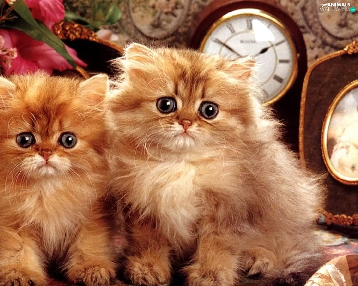 Two cars, Flowers, clocks, puss