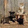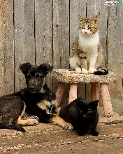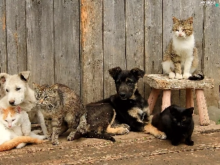 Two cars, four, cats, Dogs