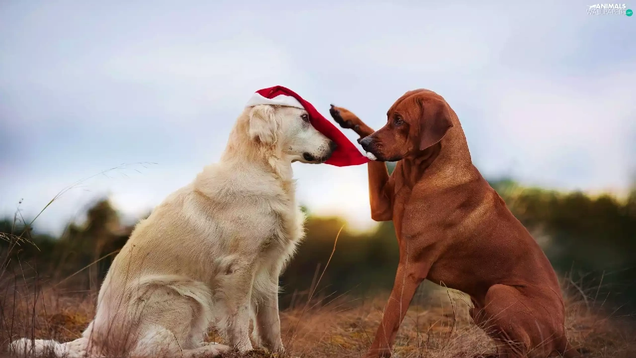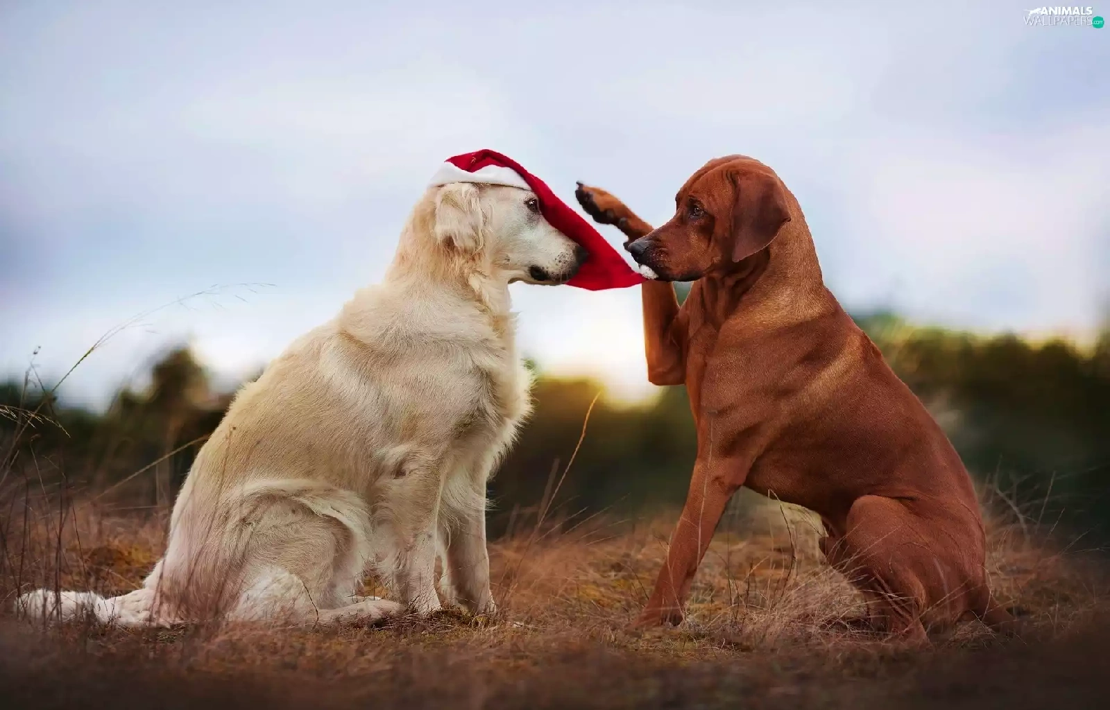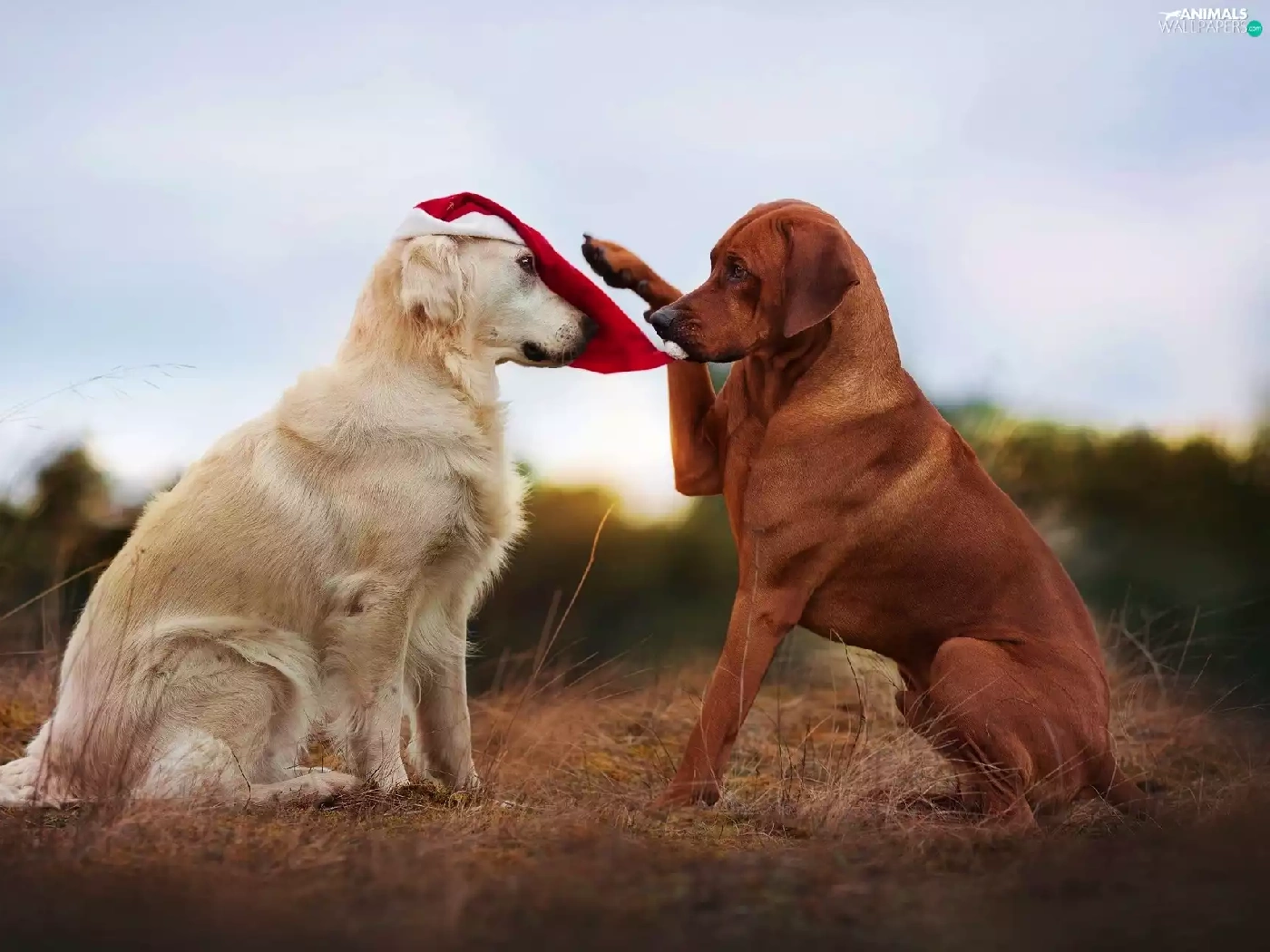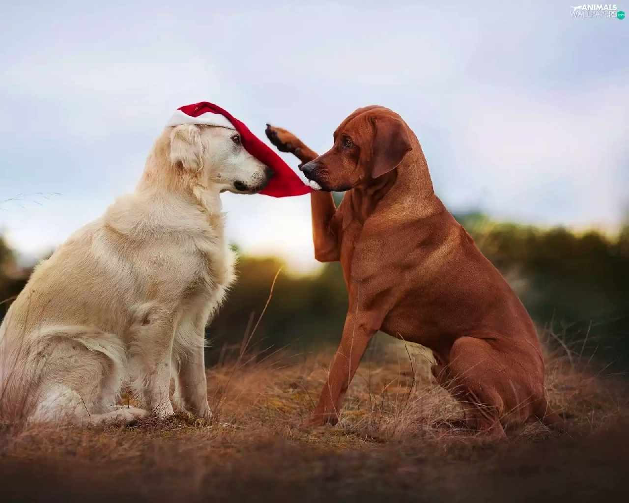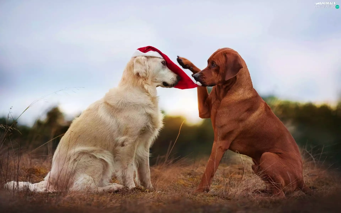 Rhodesian ridgeback, Hat, Dogs, Golden Retriever, Two cars