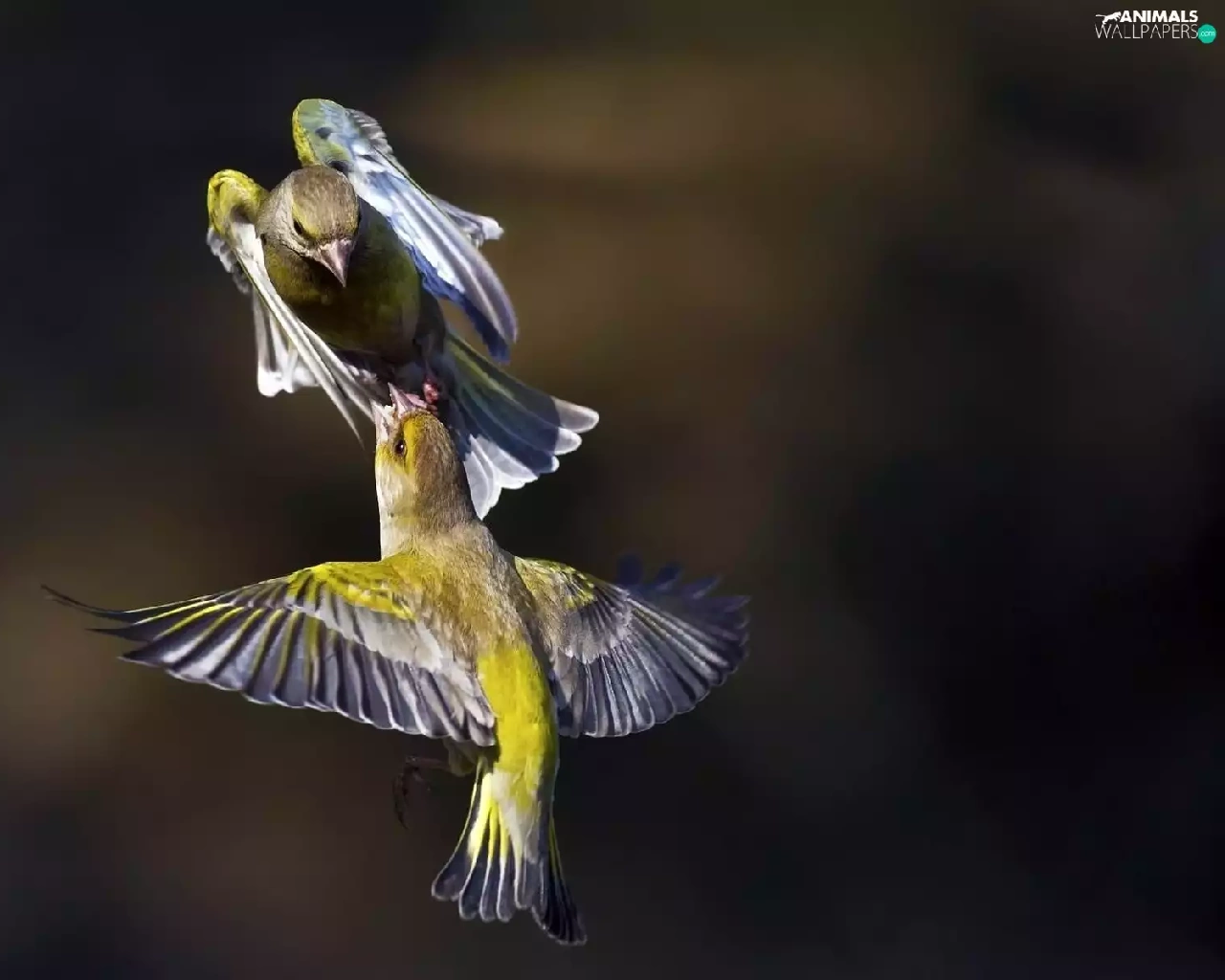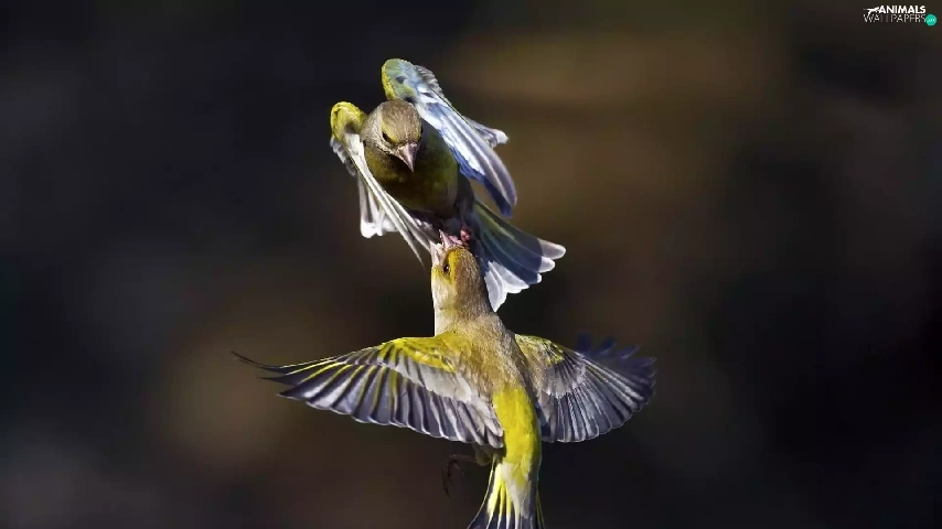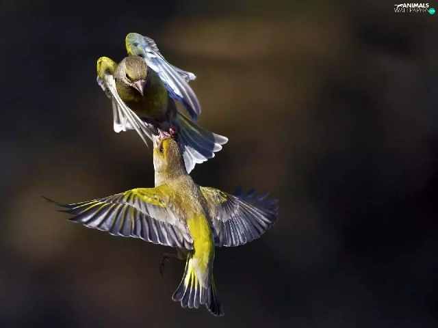 Two cars, linnet, Greenfinches, birds