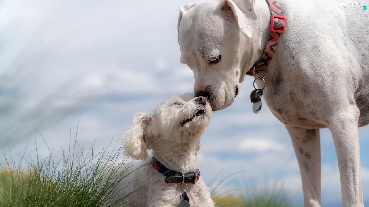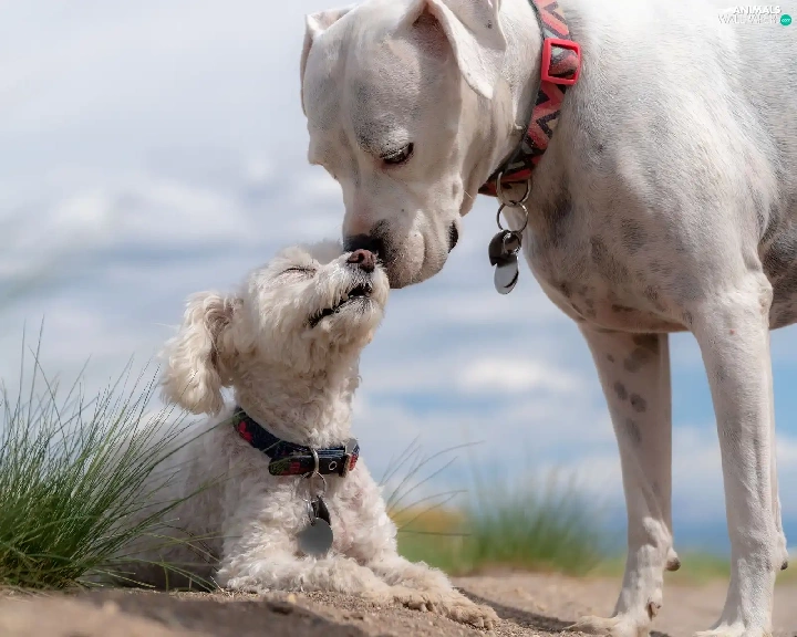 Two cars, poodle, grass, Dogs