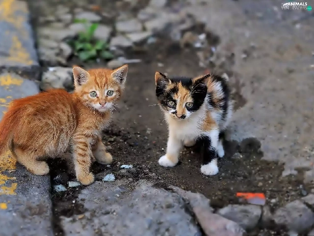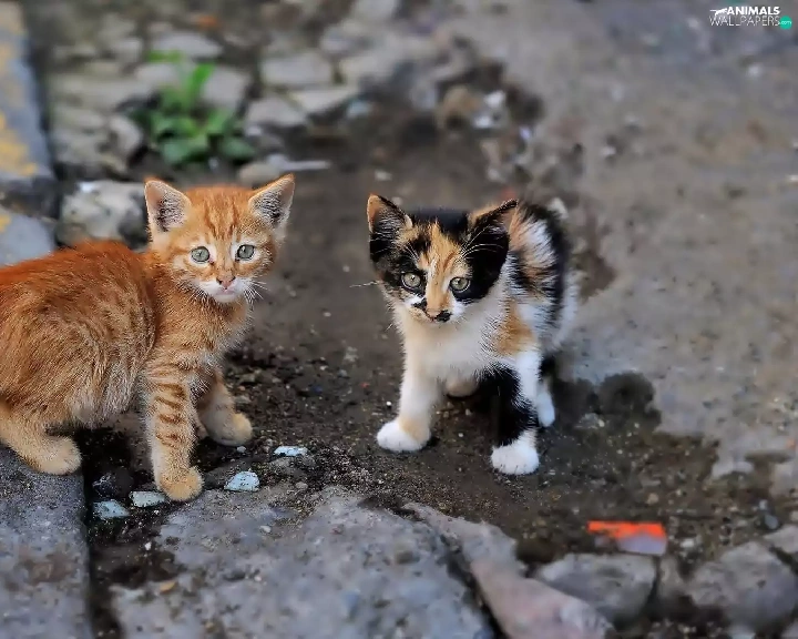 Two cars, puss, Street, young