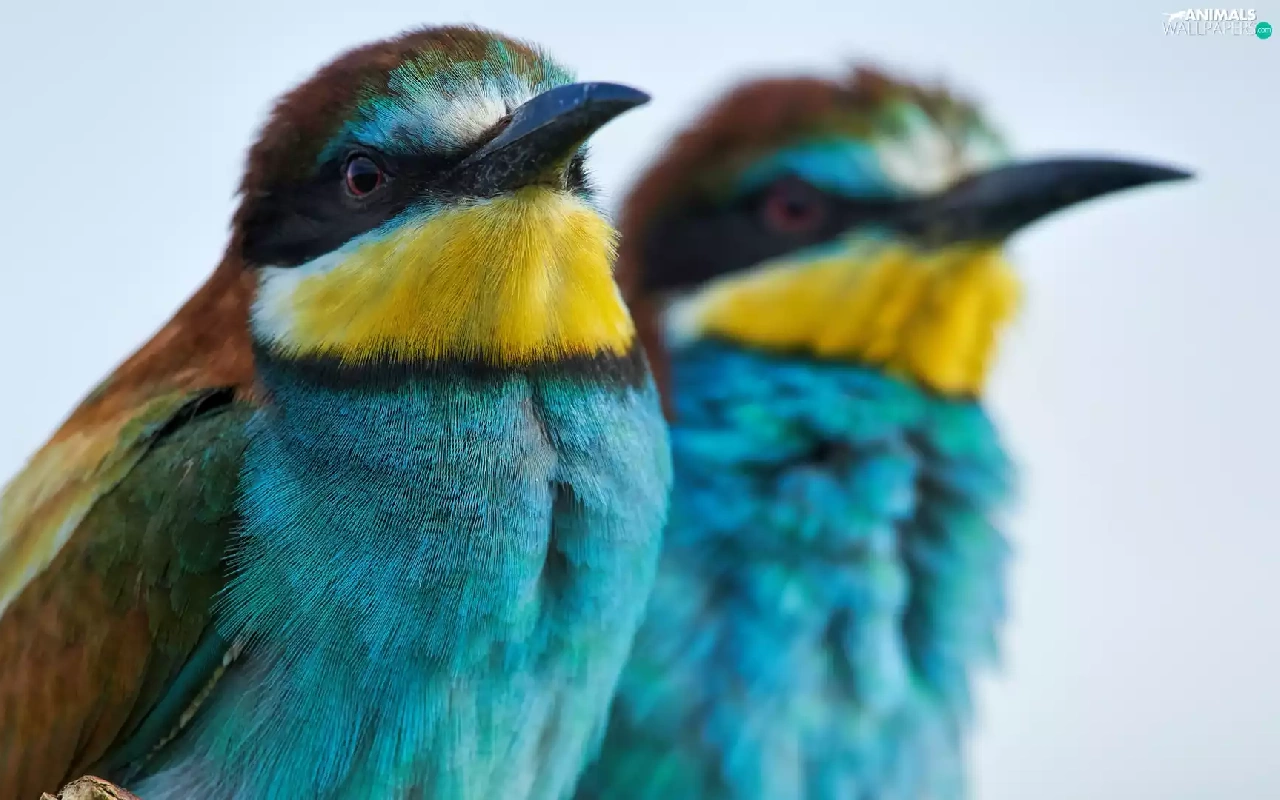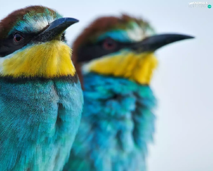 bee-eater, rapprochement, birds, Bee-eaters, Two cars