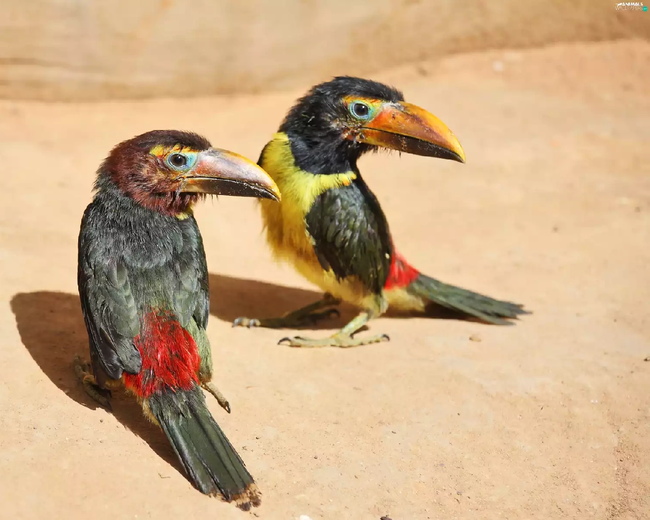 Two cars, Sand, colors, Toucan