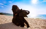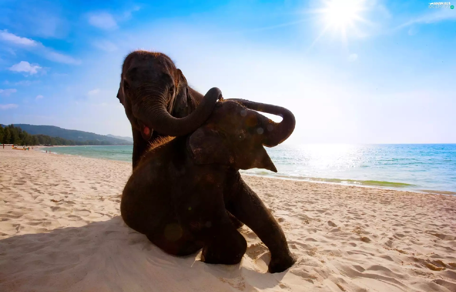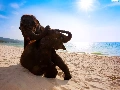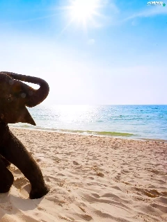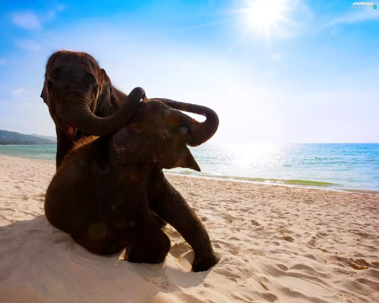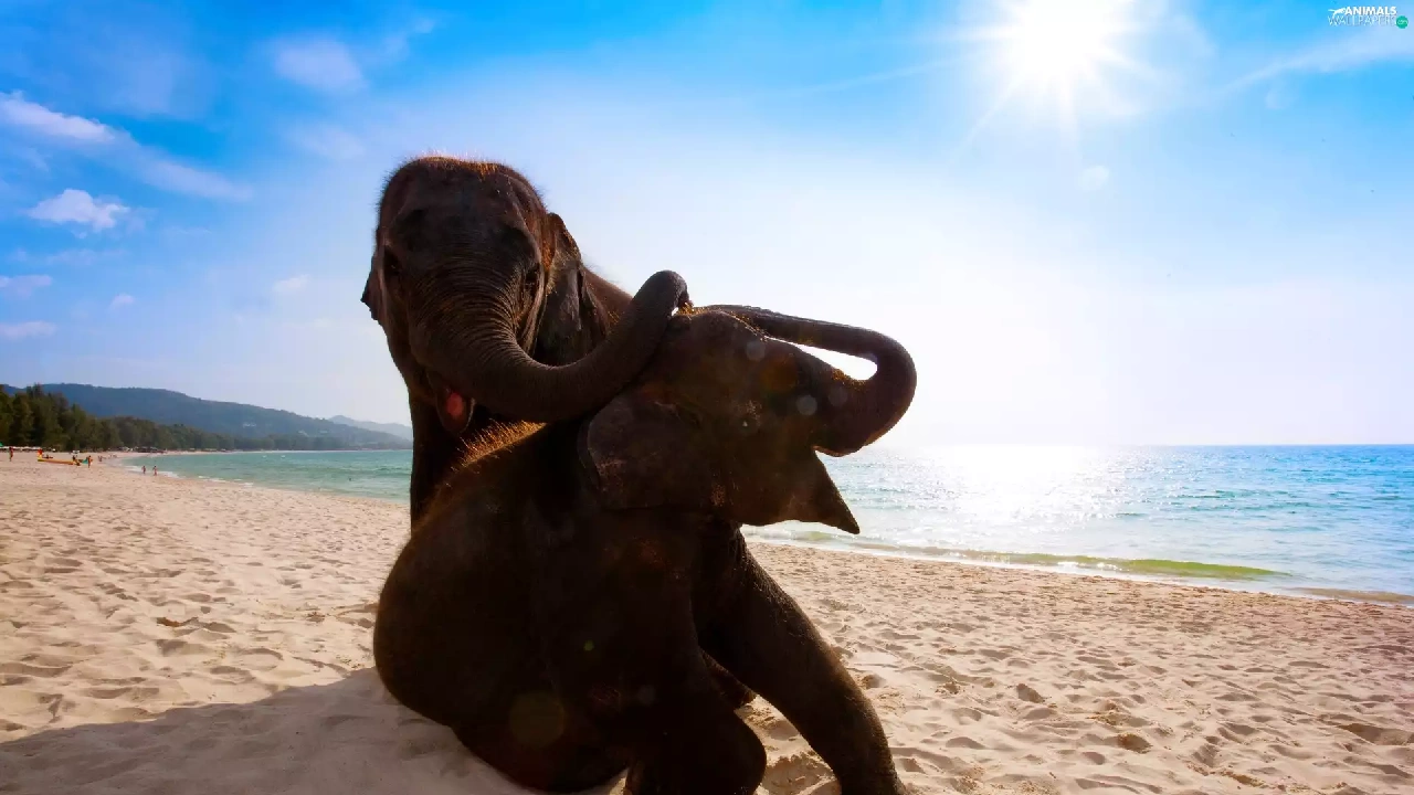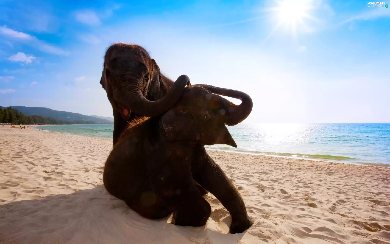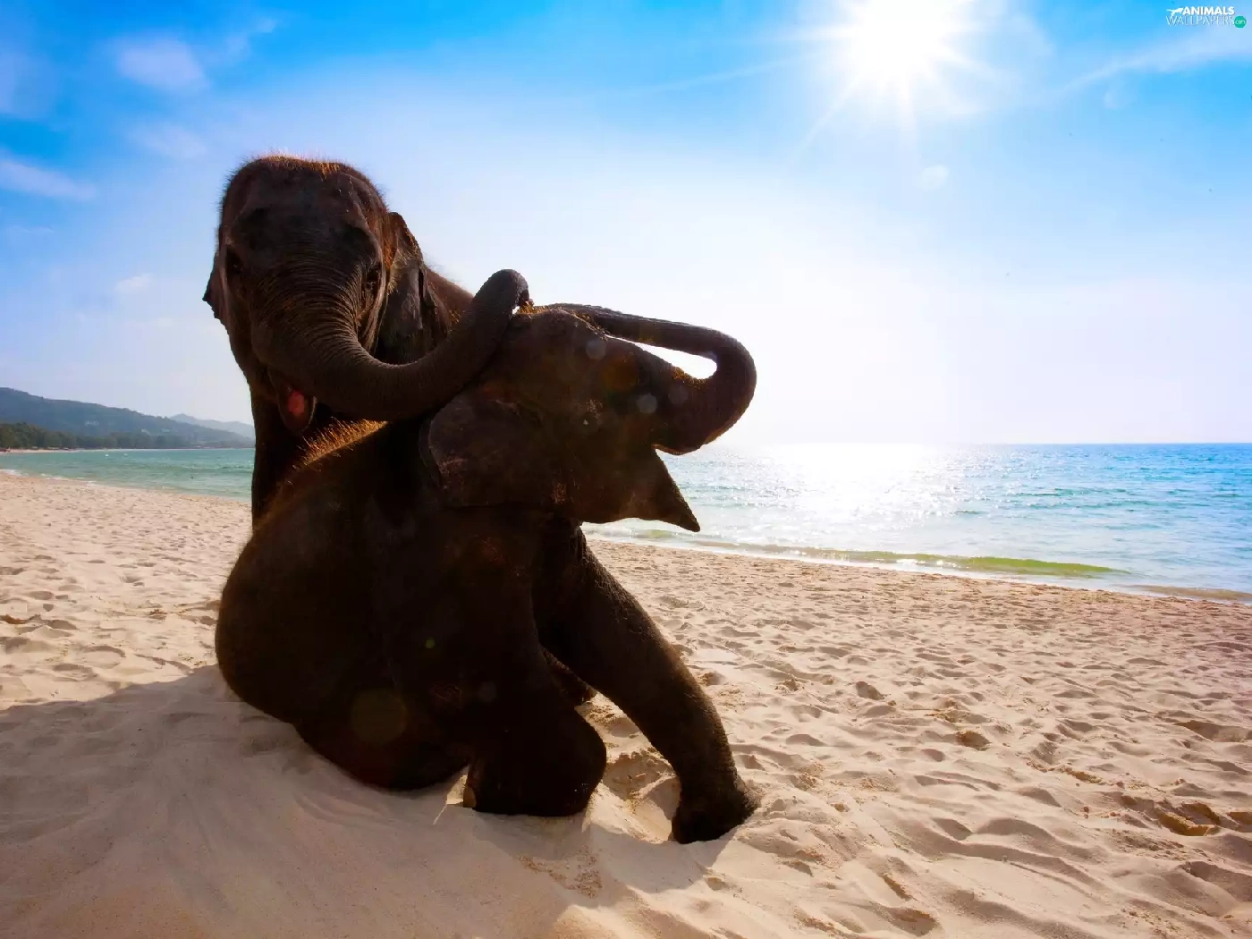 Two cars, sea, Beaches, Elephants