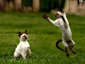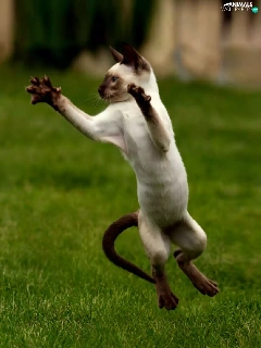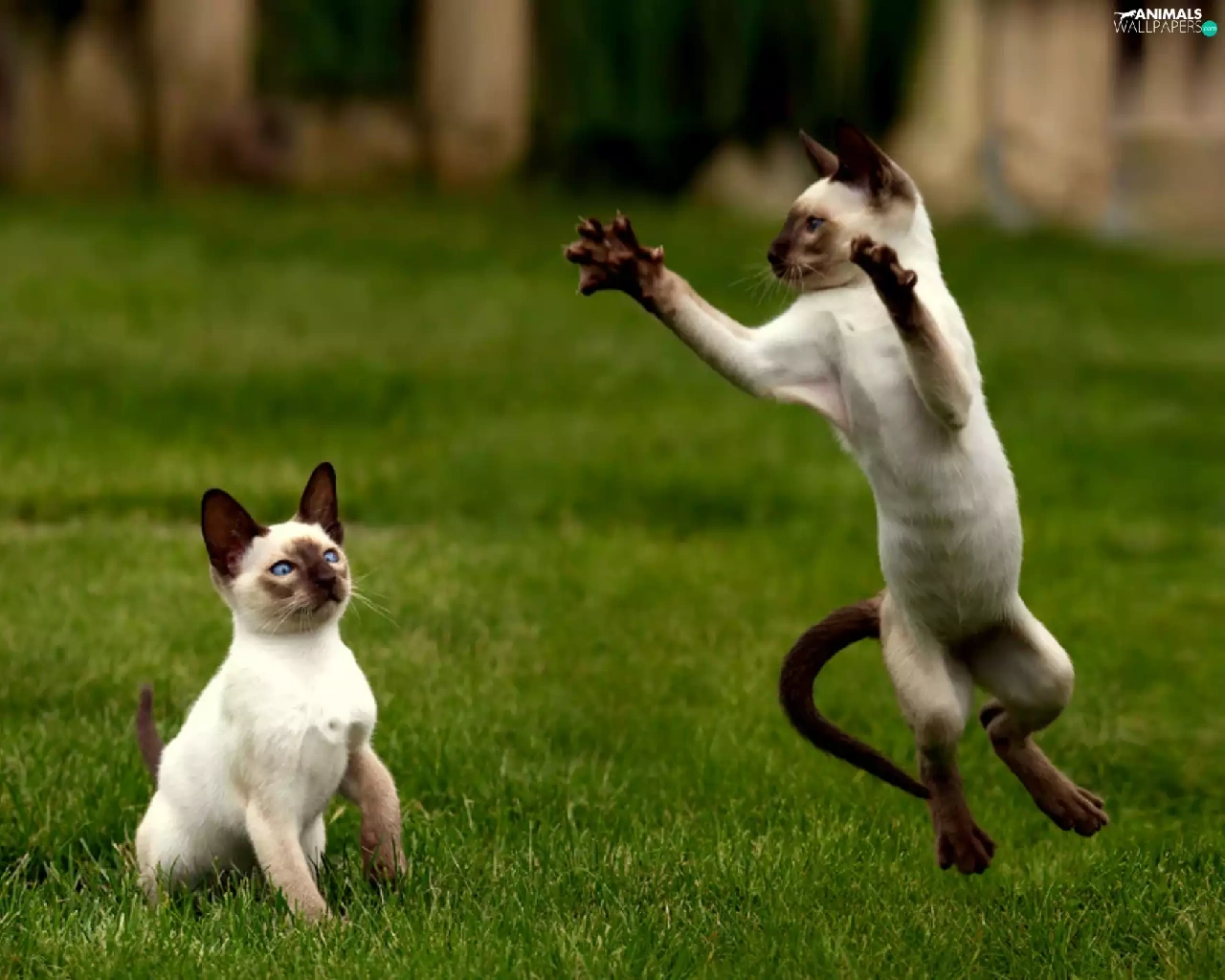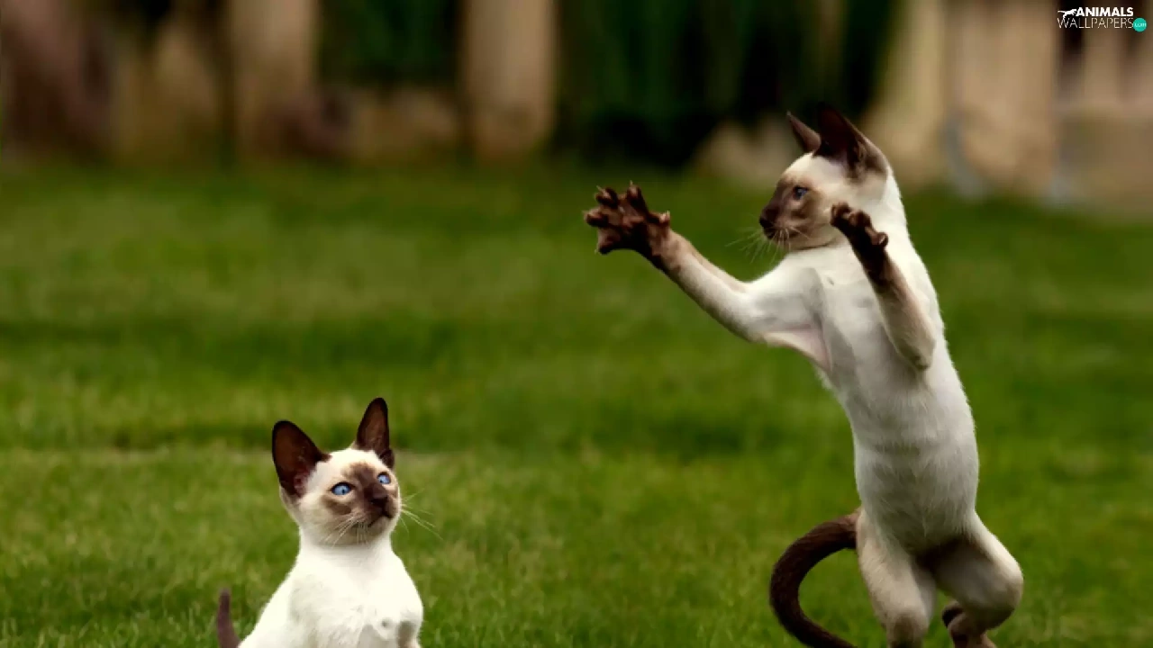 Two cars, Siamese, play, puss