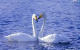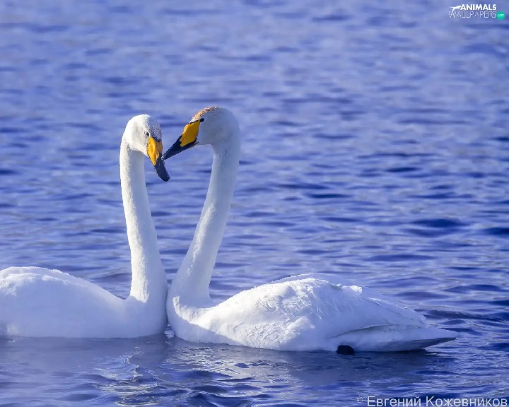 Two cars, Swan, water, birds