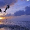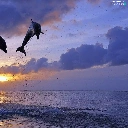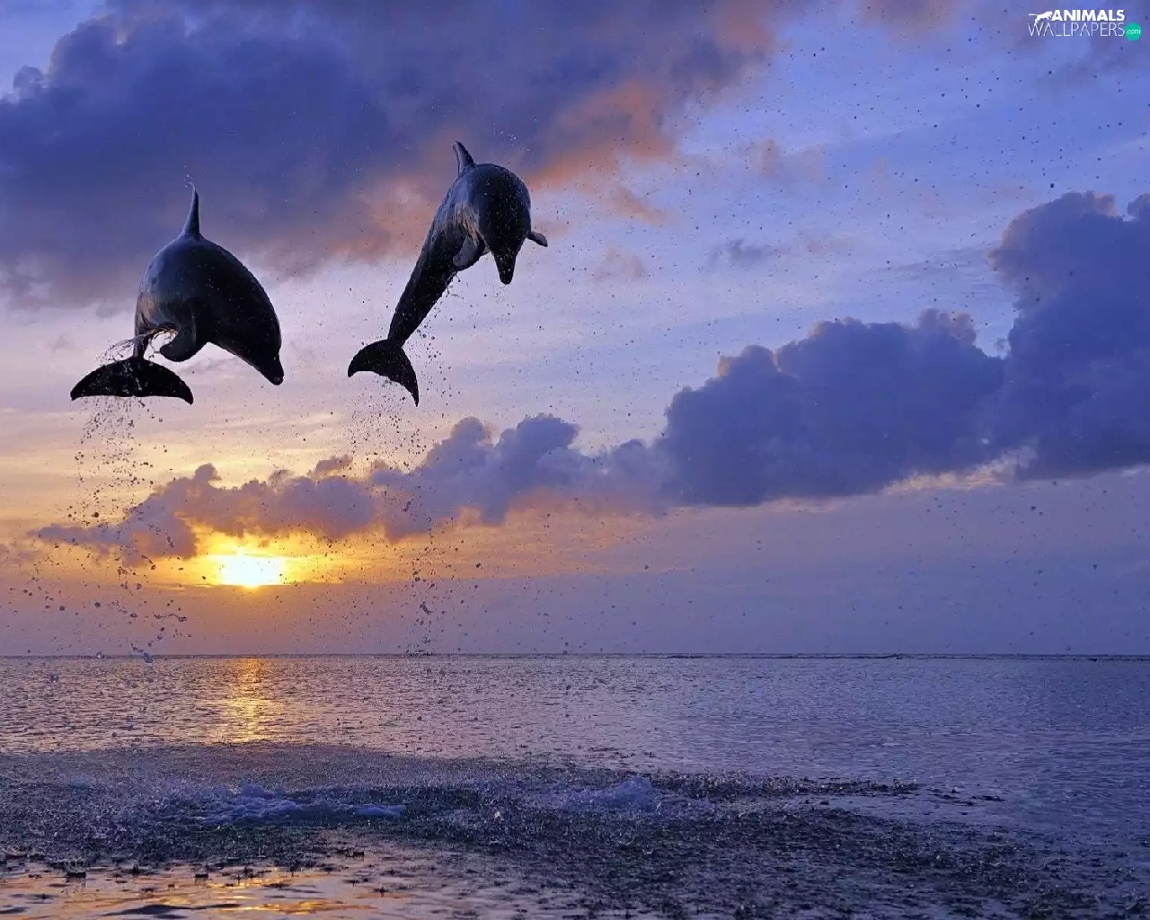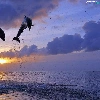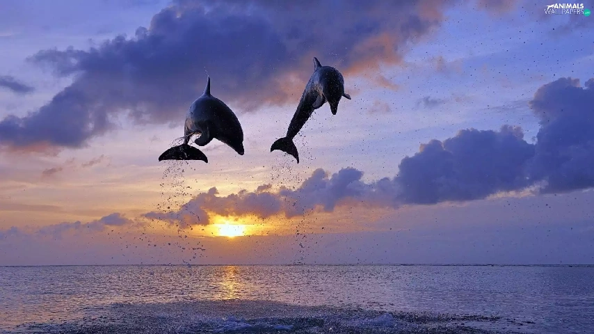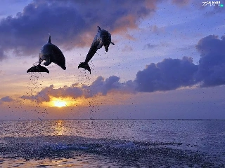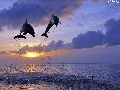 Two cars, west, sun, dolphins