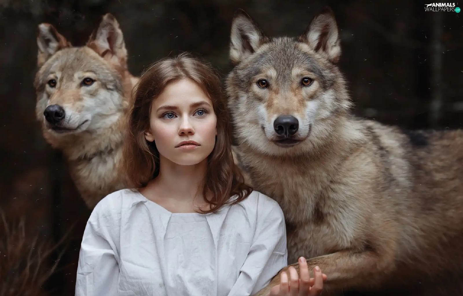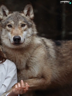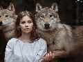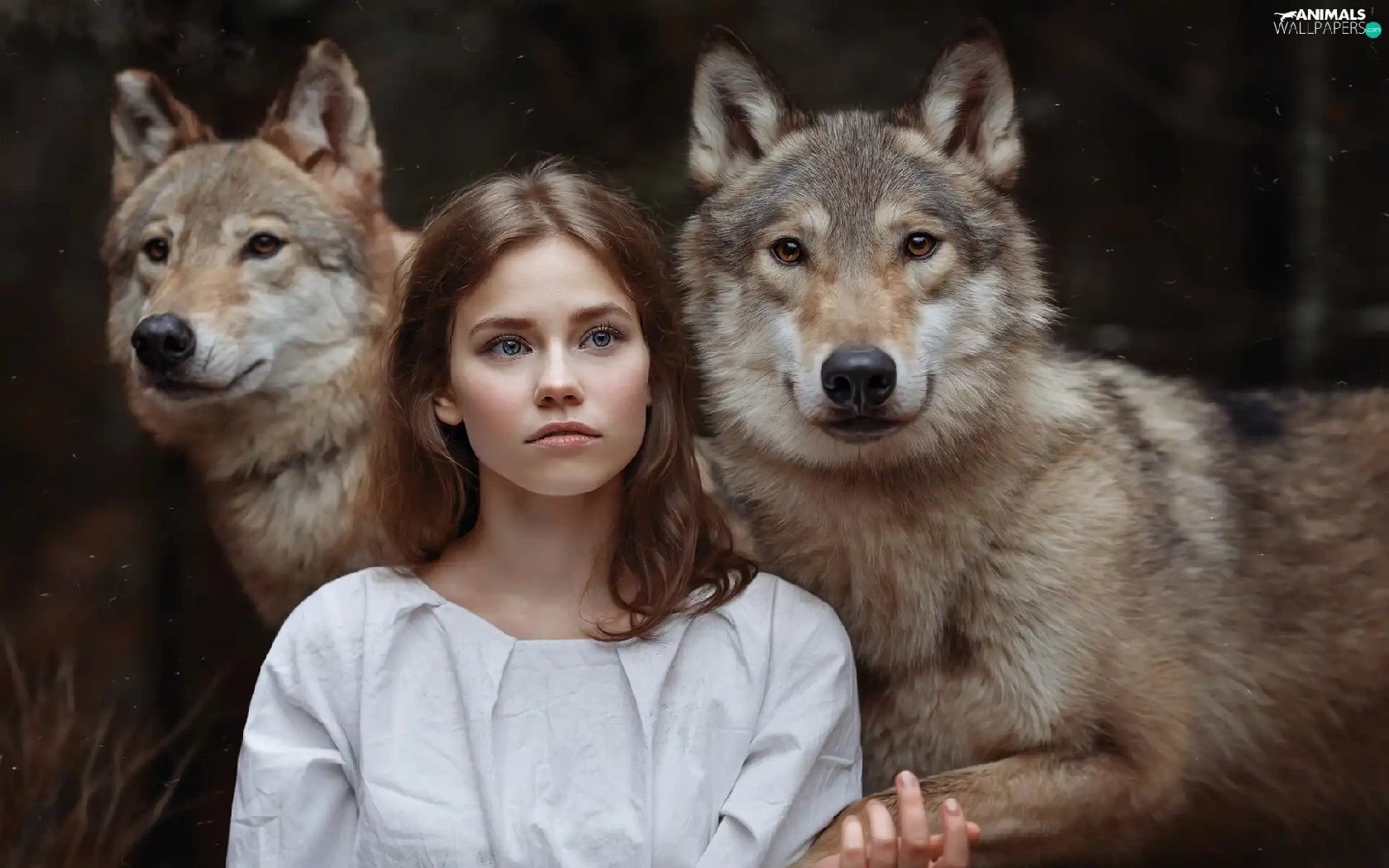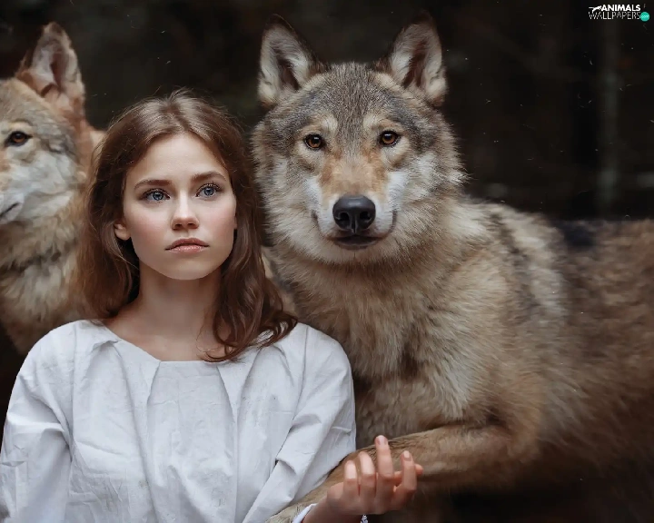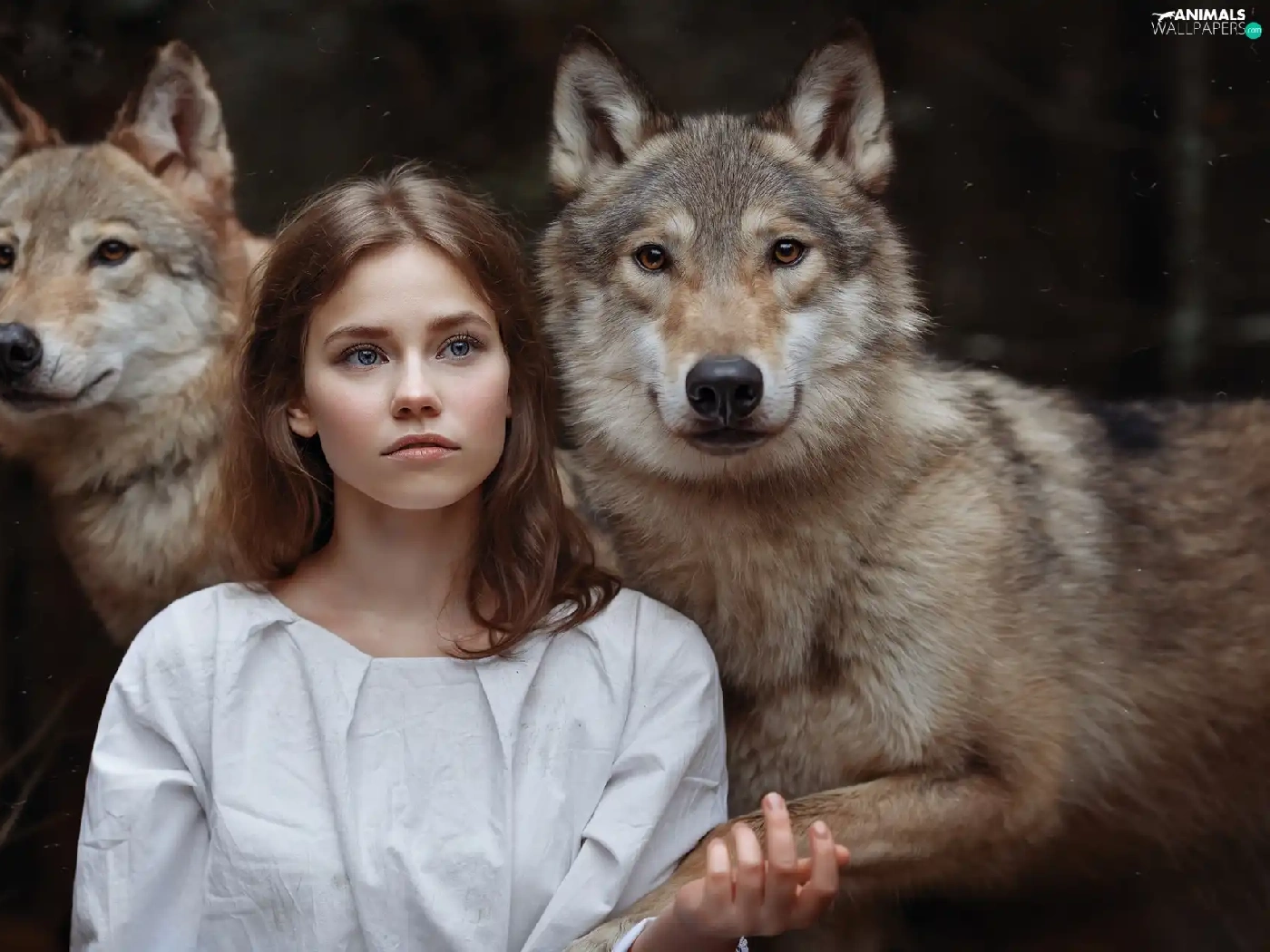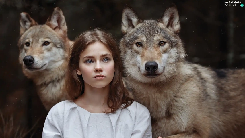 wolves, girl, Two cars