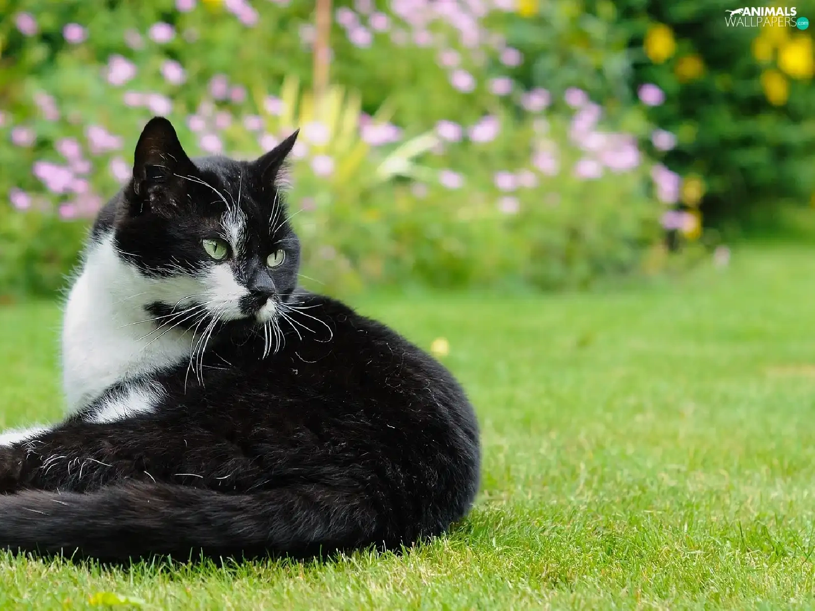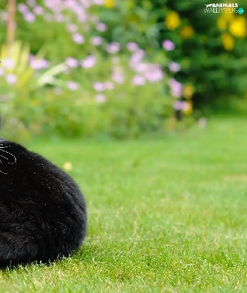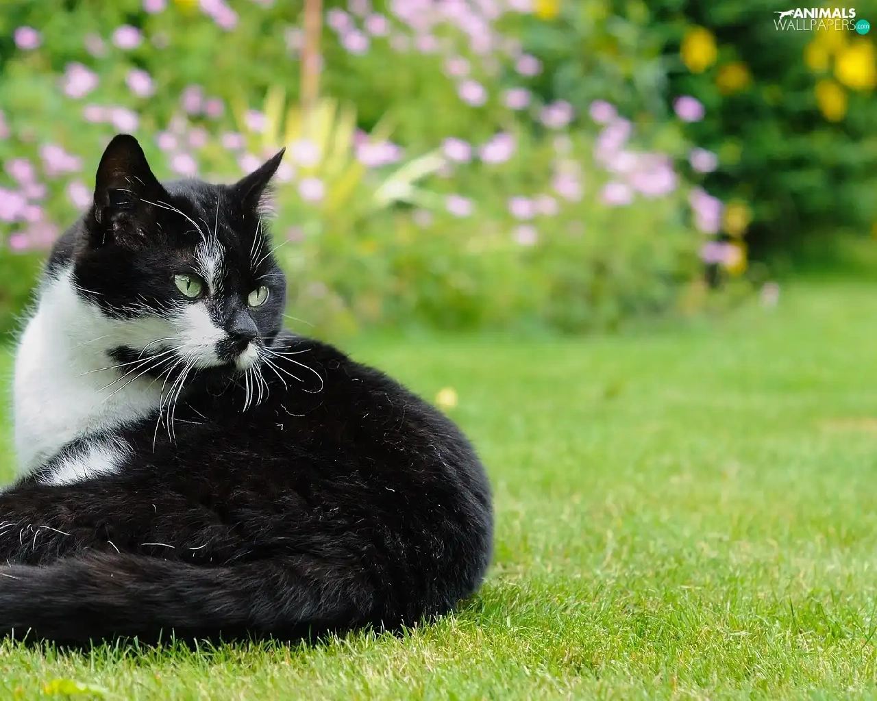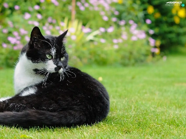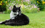 grass, black and white, cat