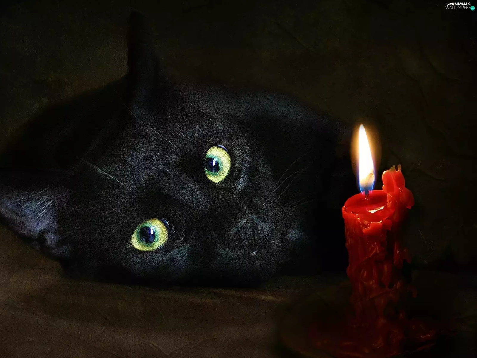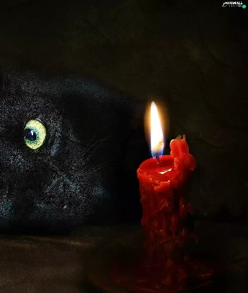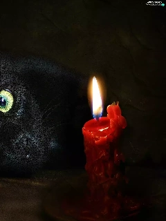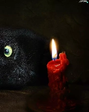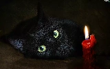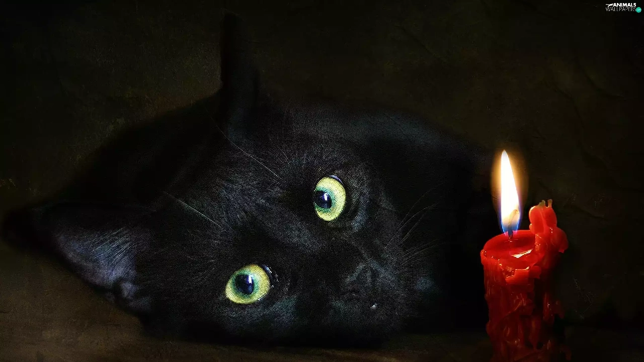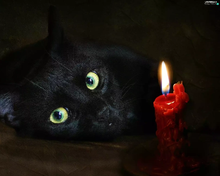 green ones, Eyes, cat, candle, Black