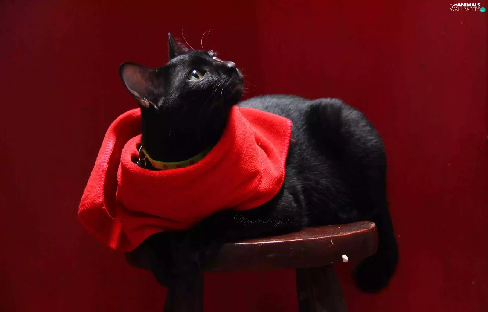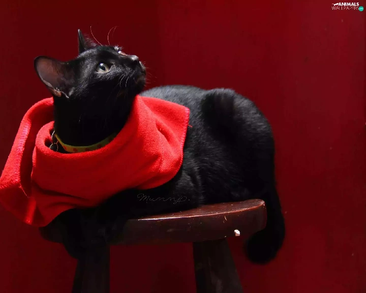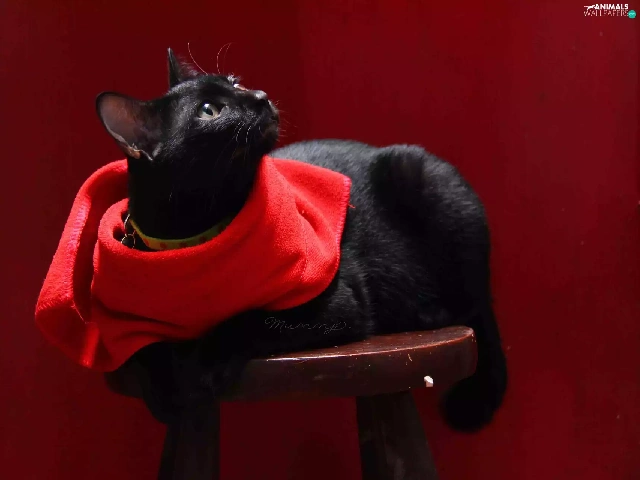 Black, Red, shawl, cat