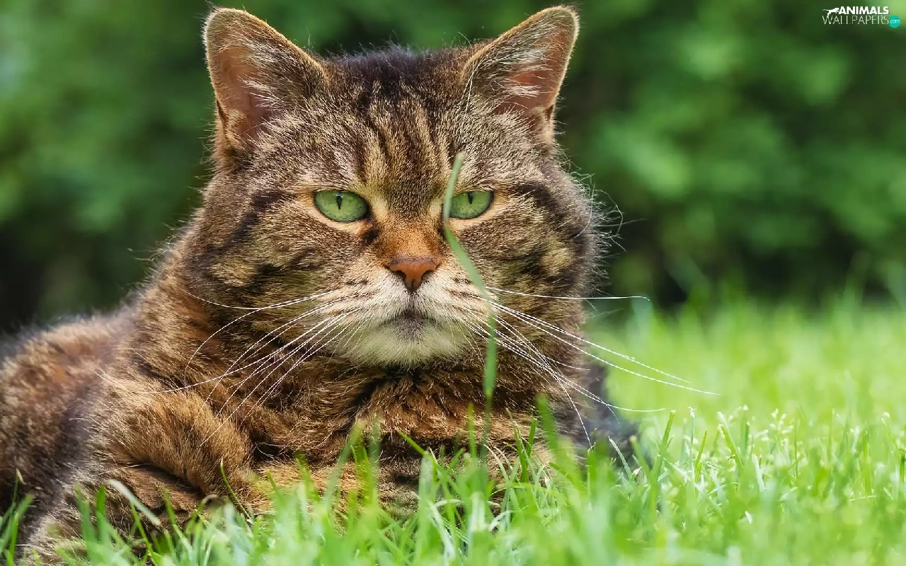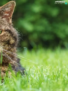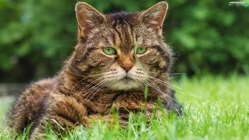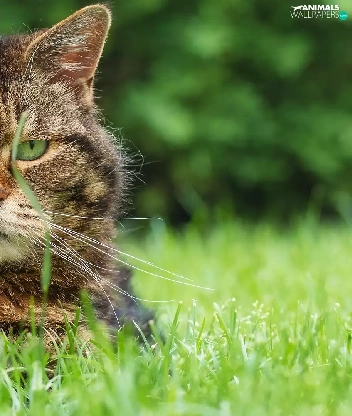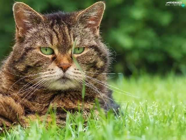 dun, grass, rapprochement, cat