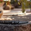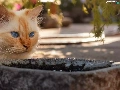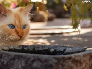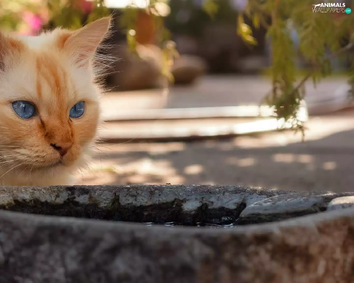 ginger, stone, bowl, cat