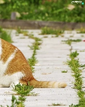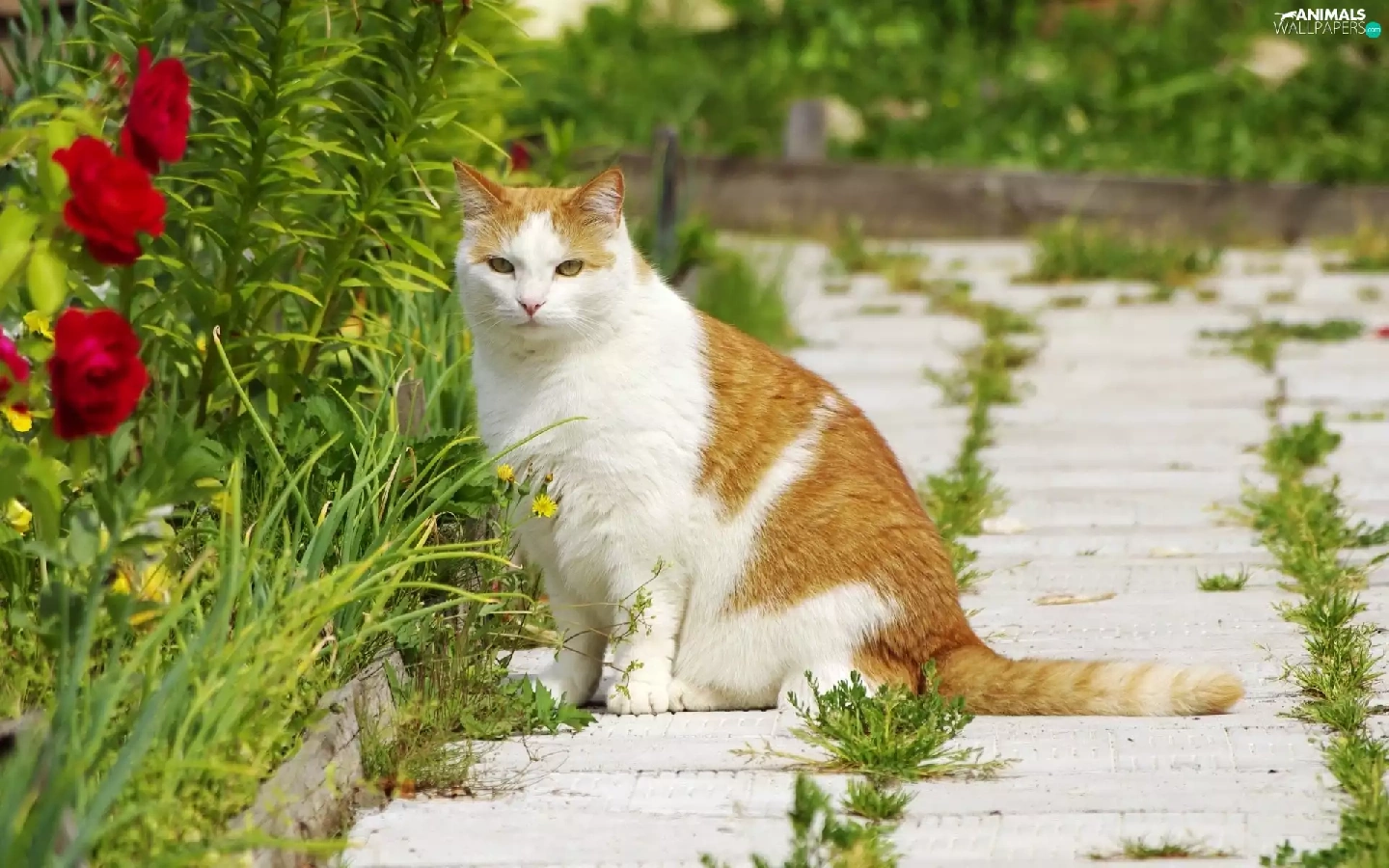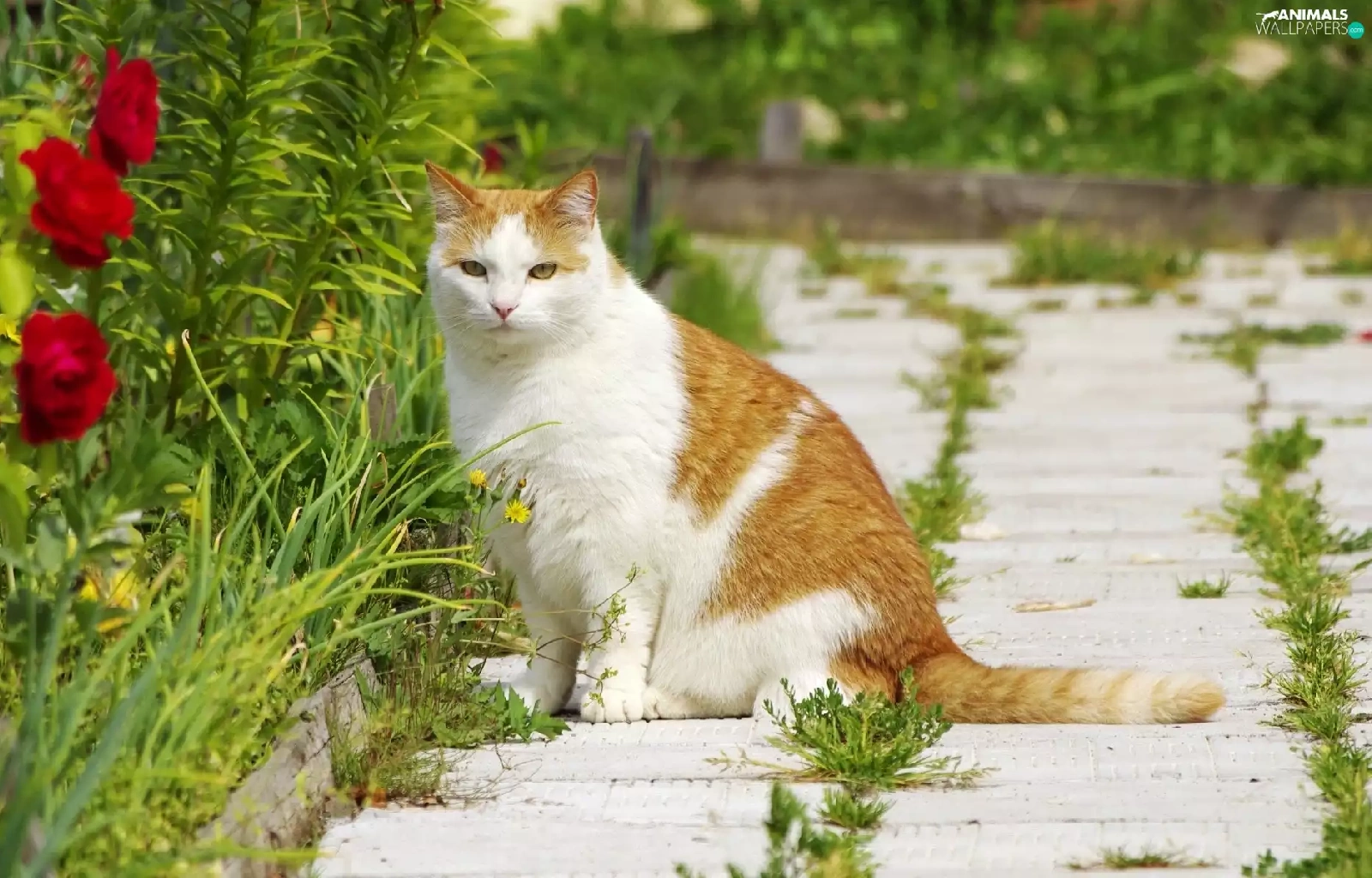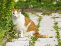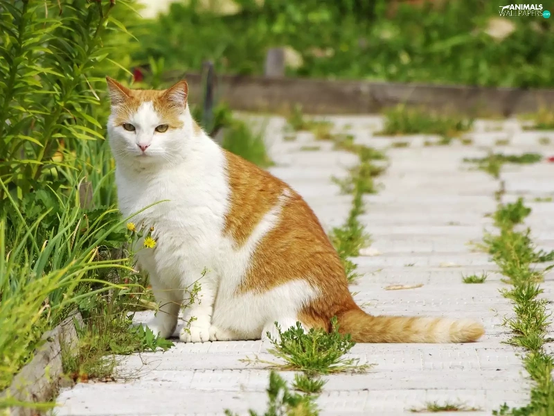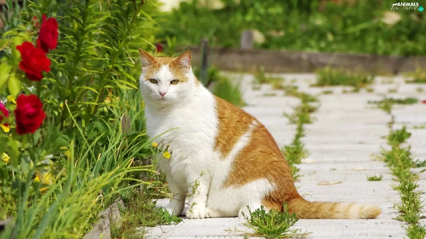 ginger, patch, Flowers, cat
