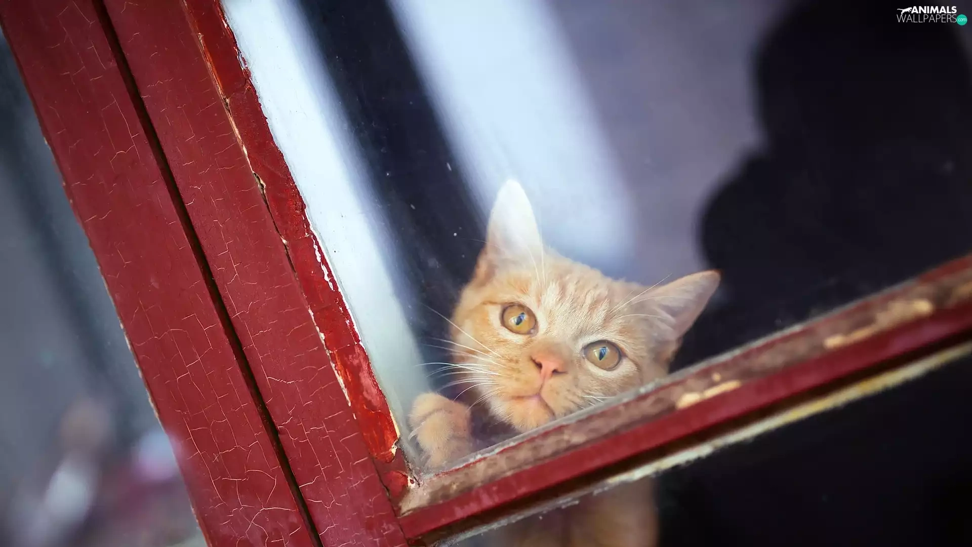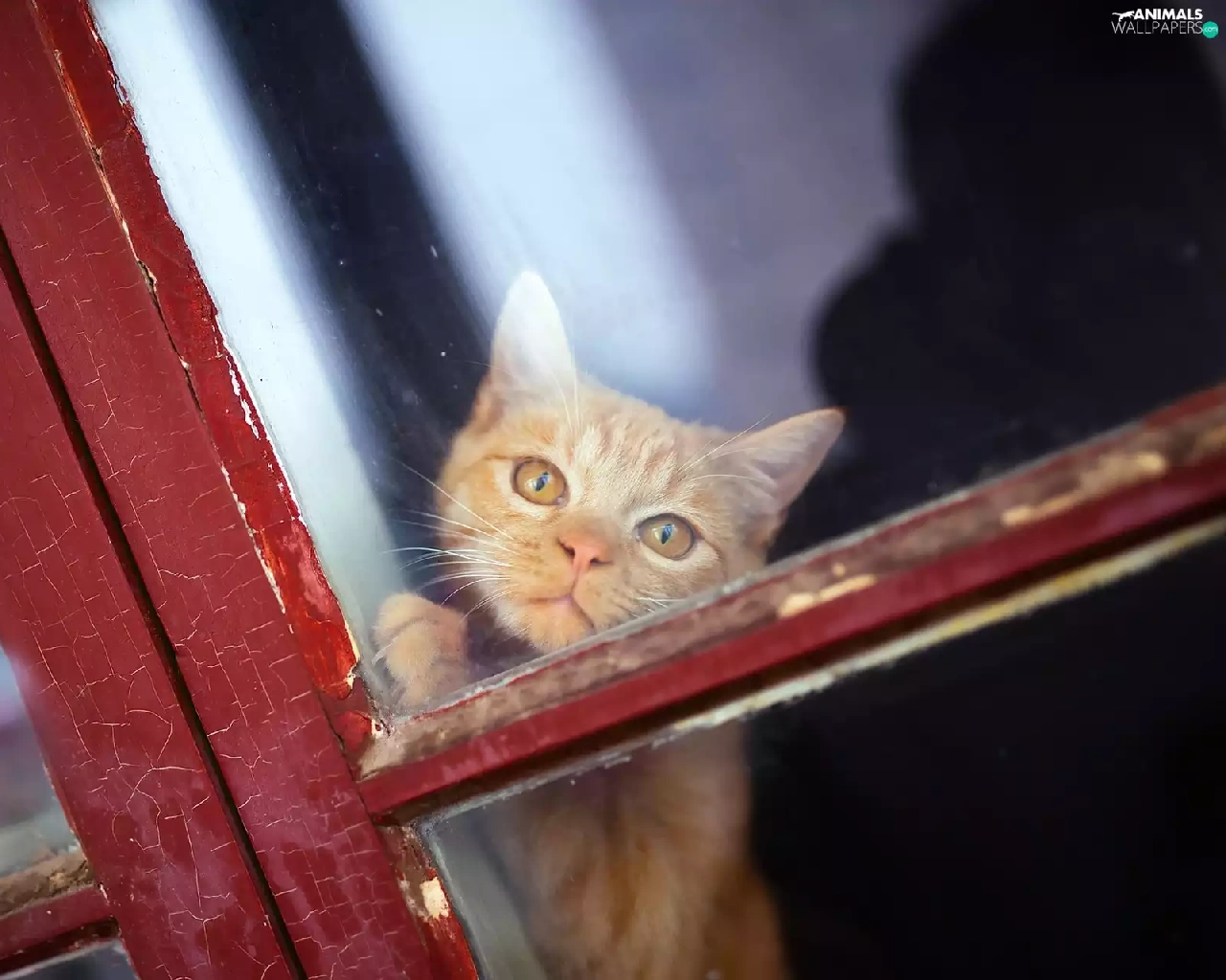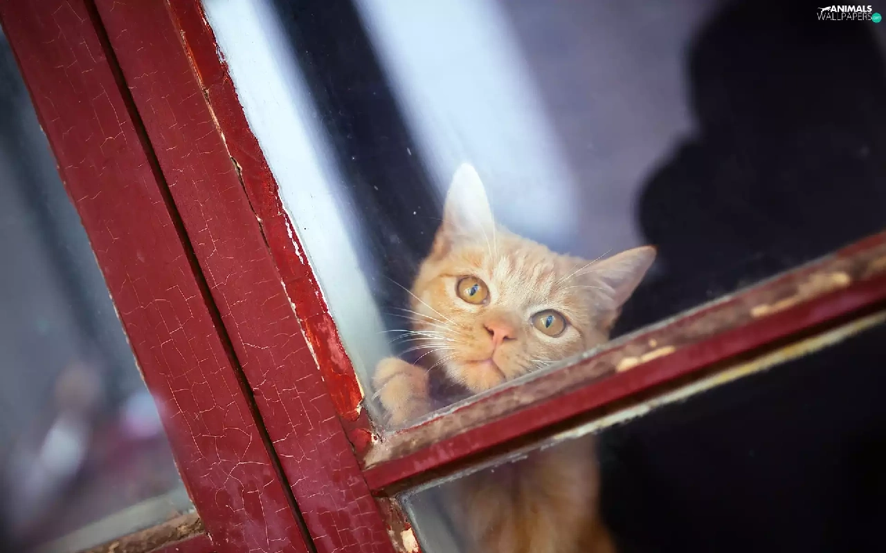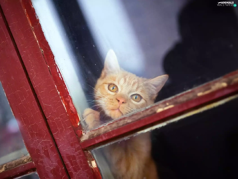 ginger, Window, Glass, cat