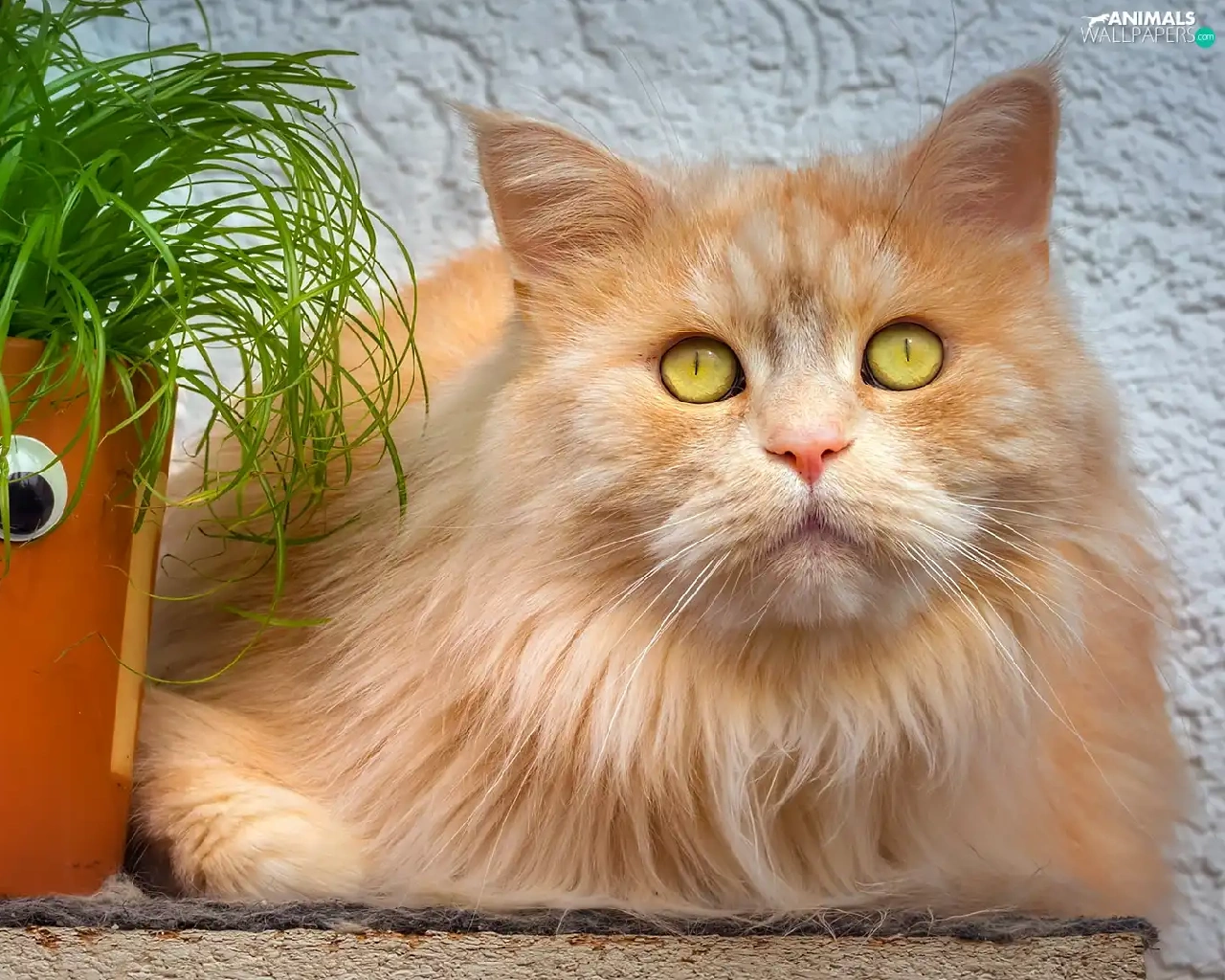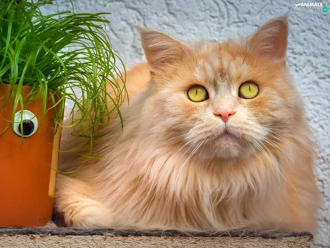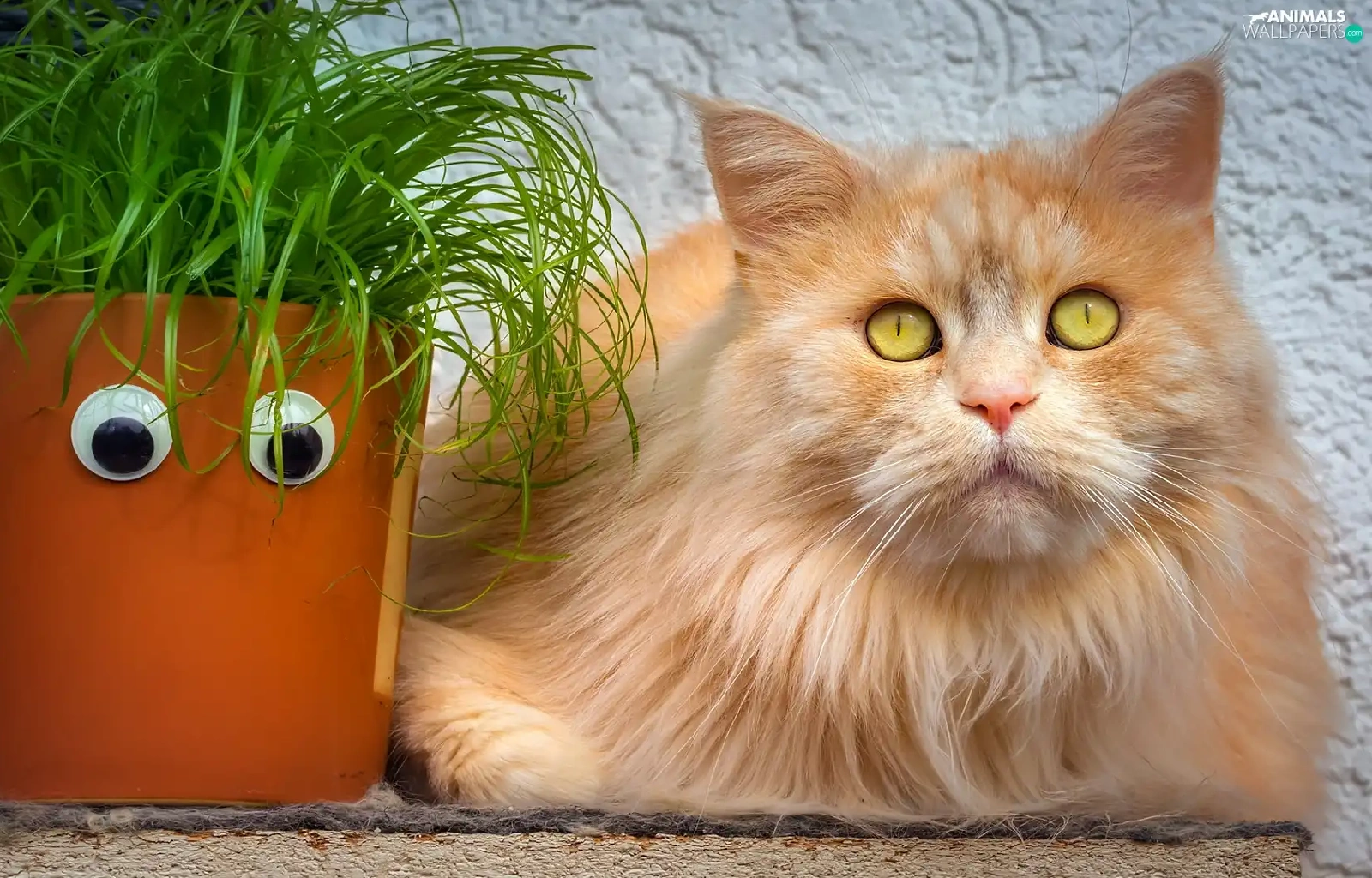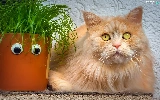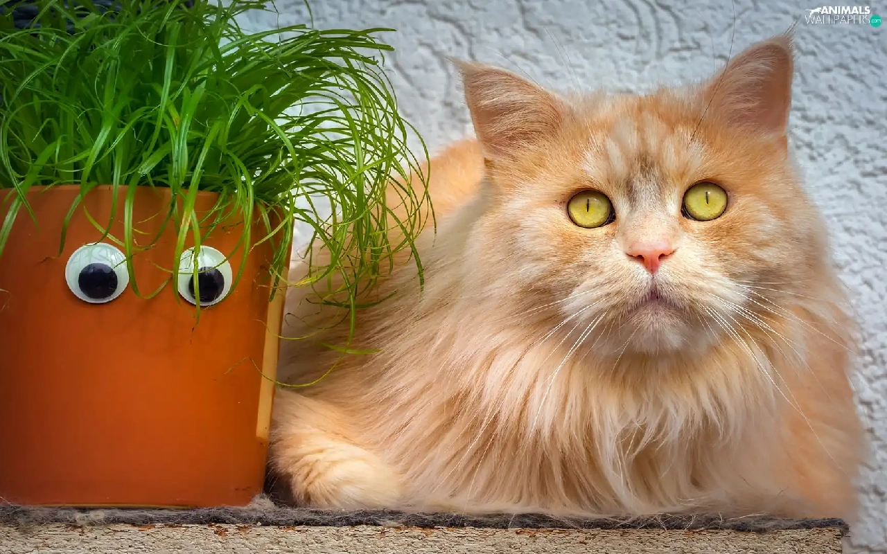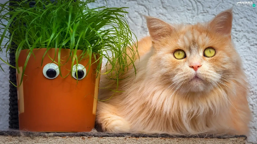 ginger, pot, grass, cat
