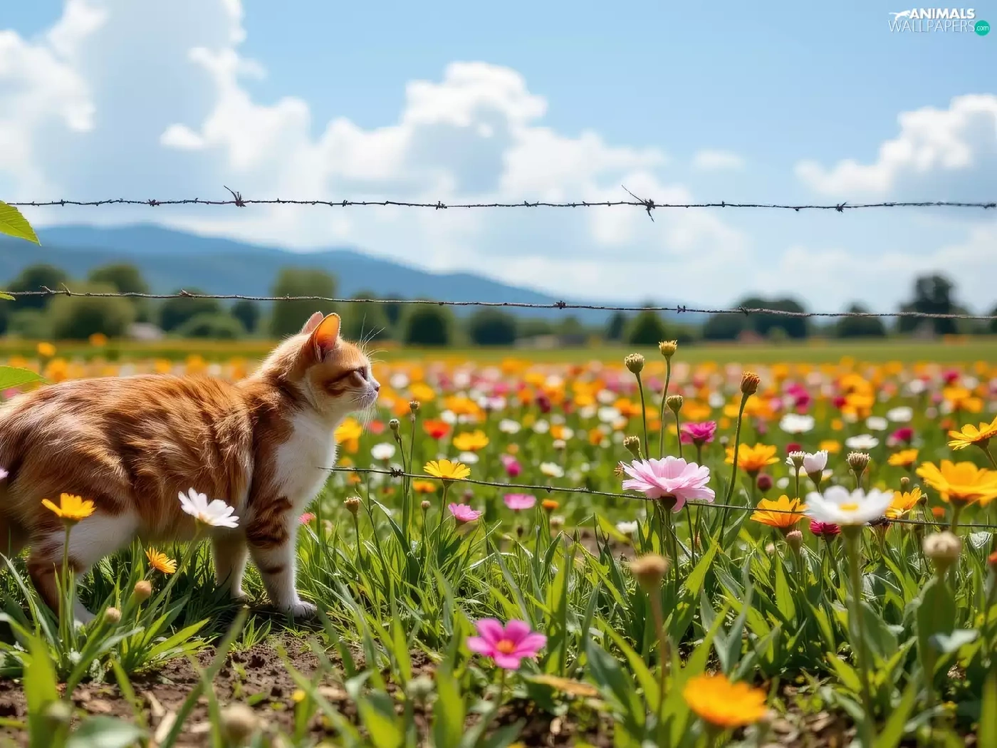 ginger, fence, Meadow, cat