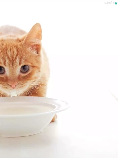 ginger, plate, milk, cat