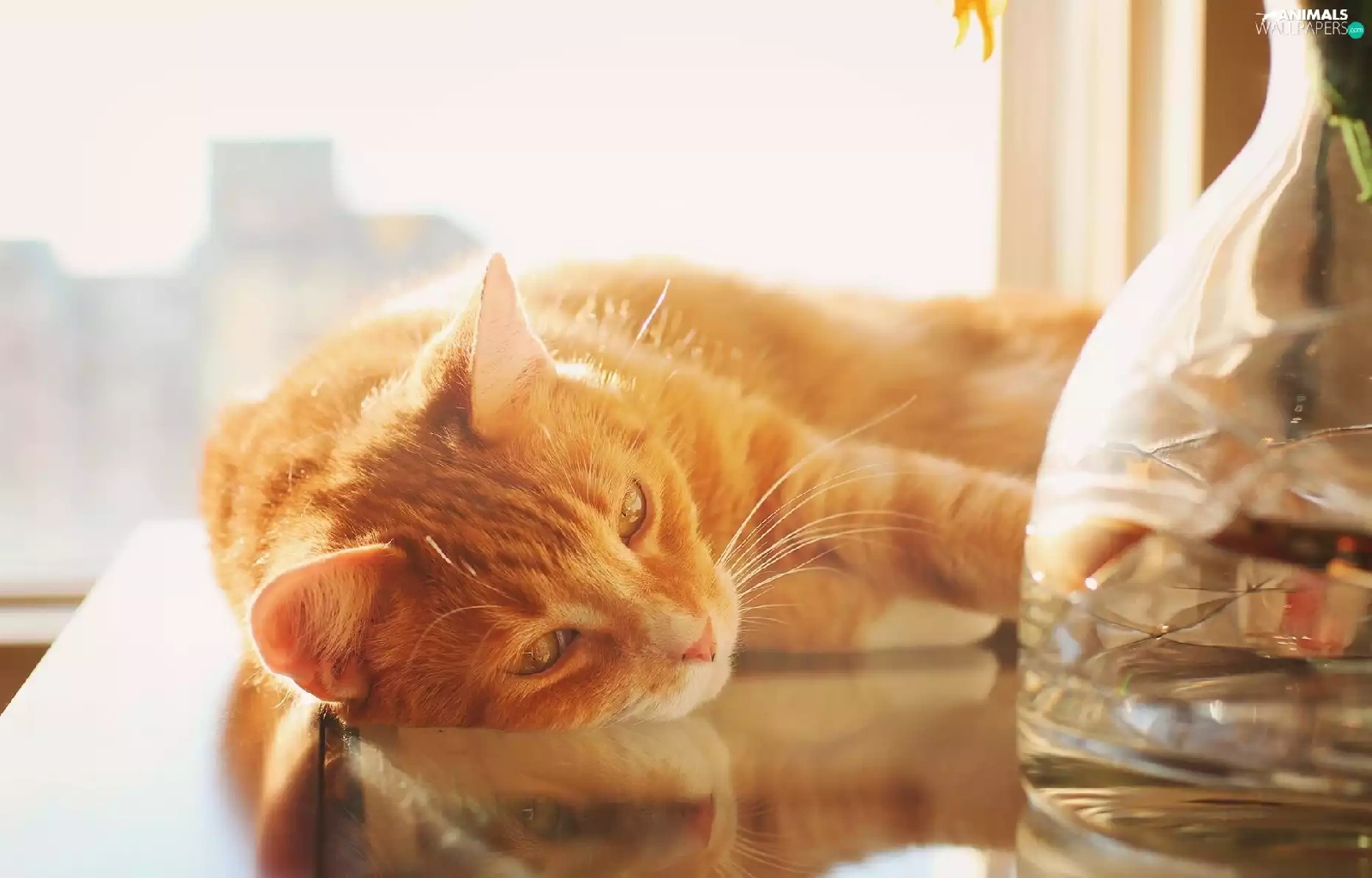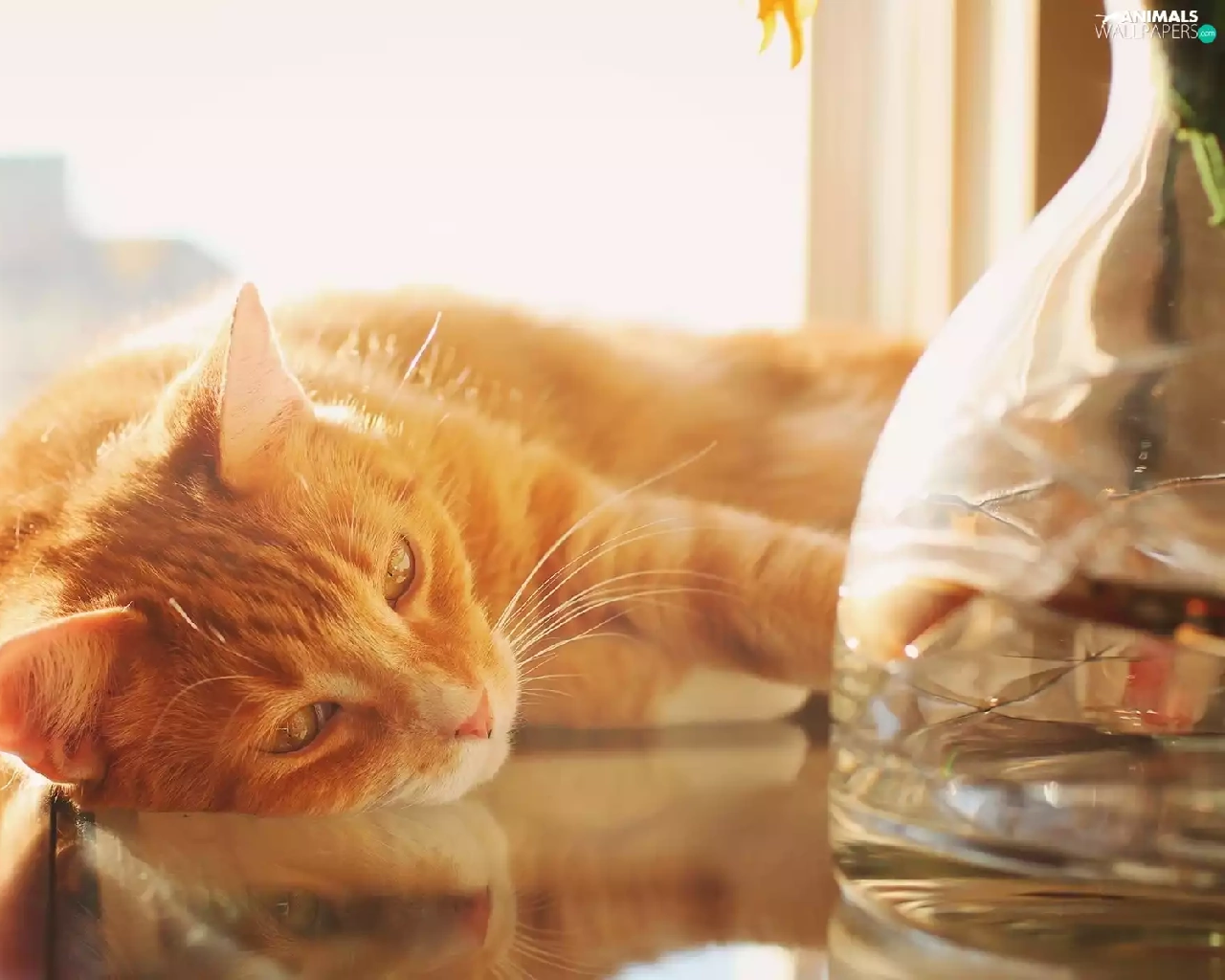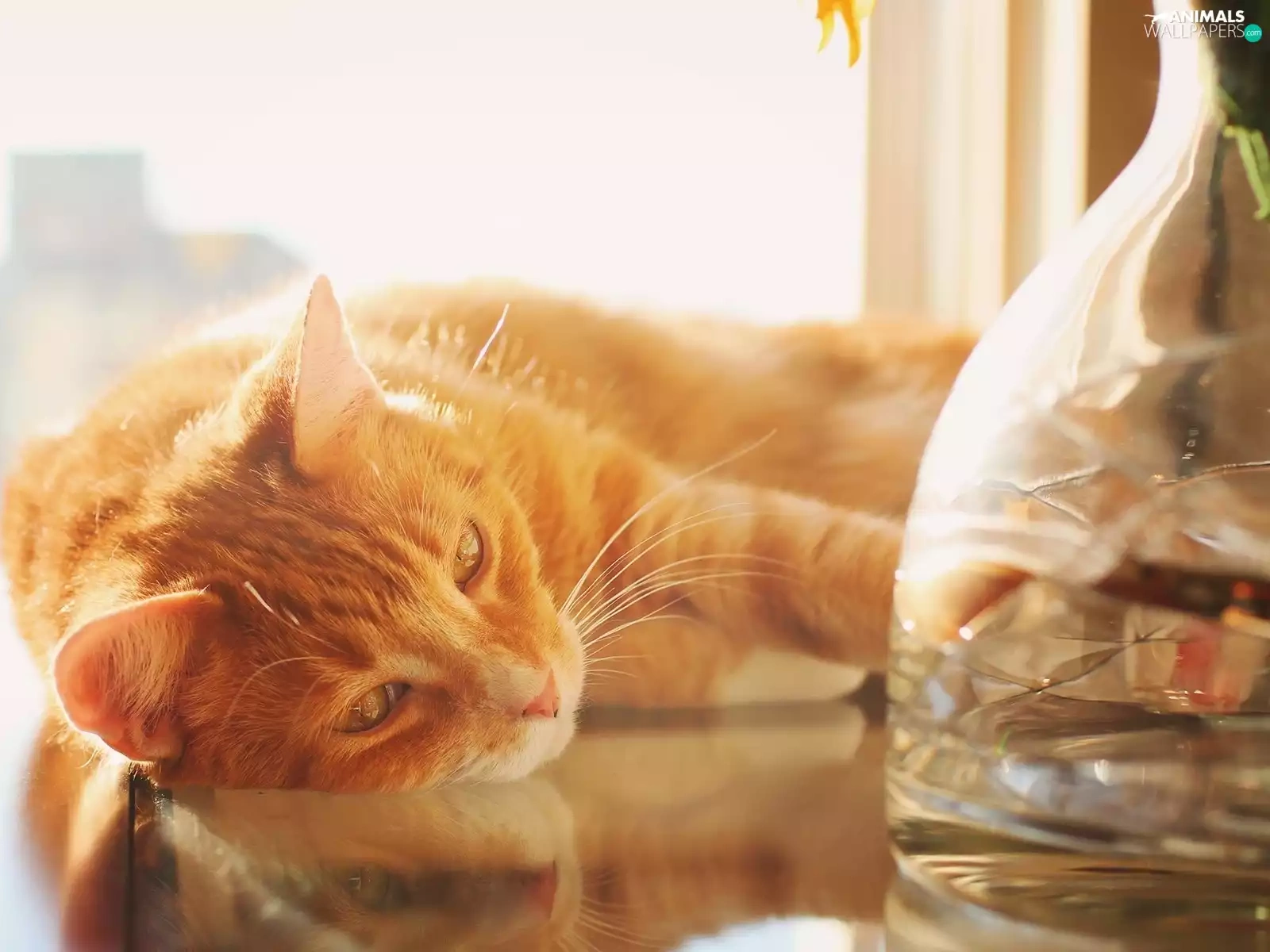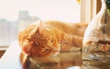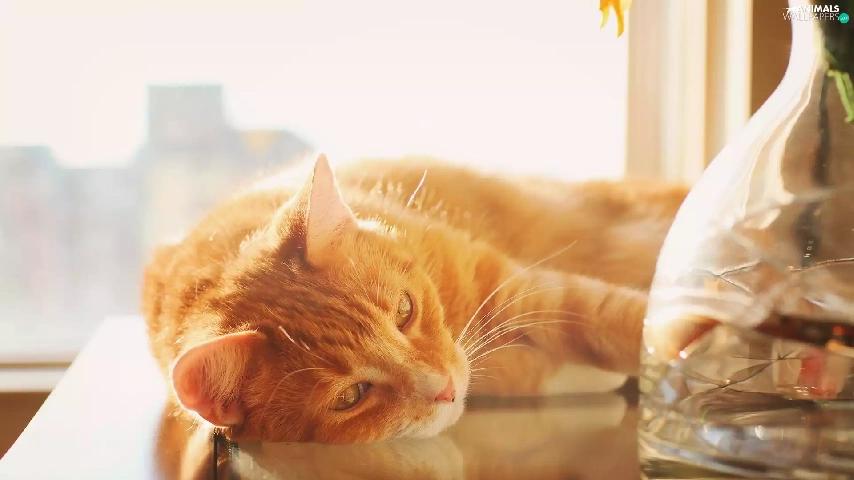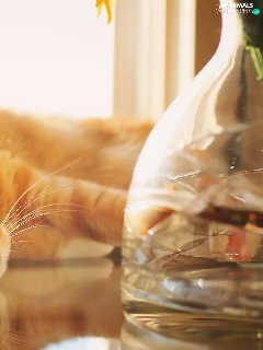 ginger, Table, Vase, cat