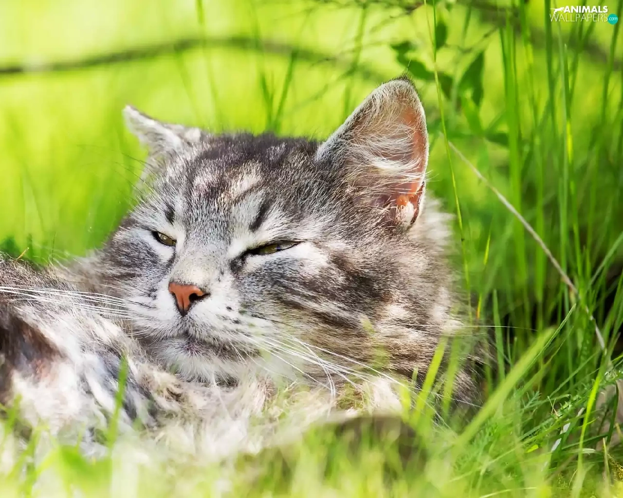 cat, grass