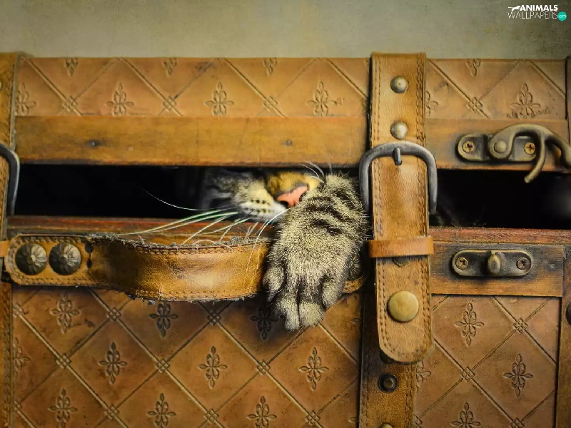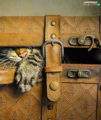 Gray, Leather, case, cat