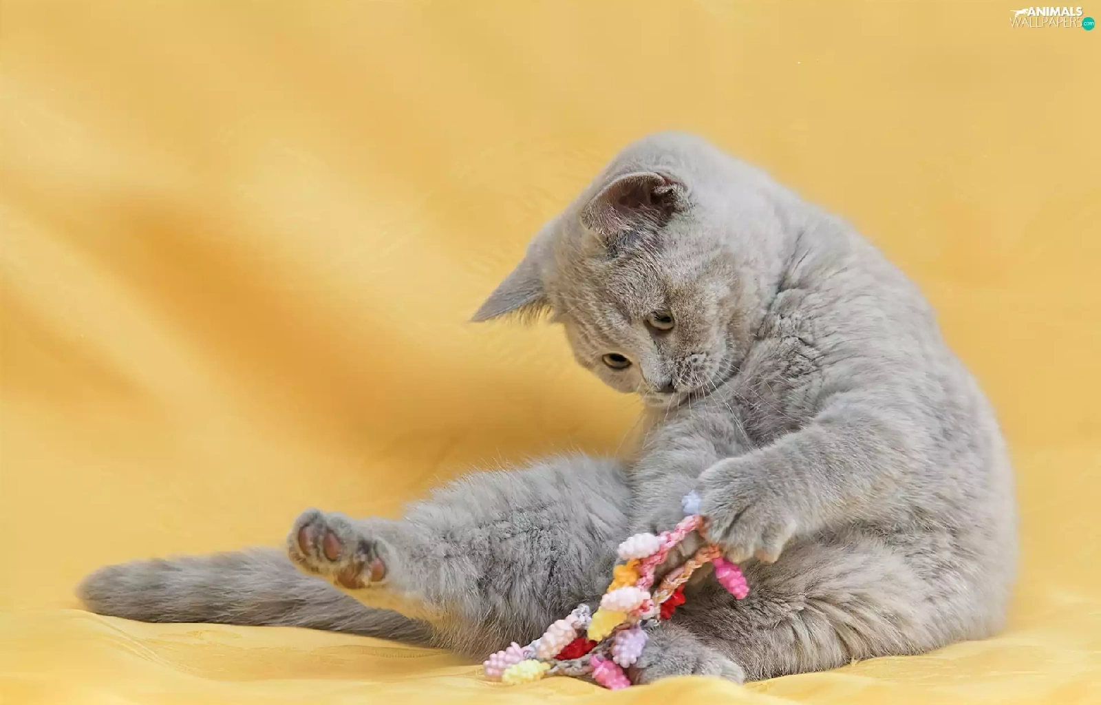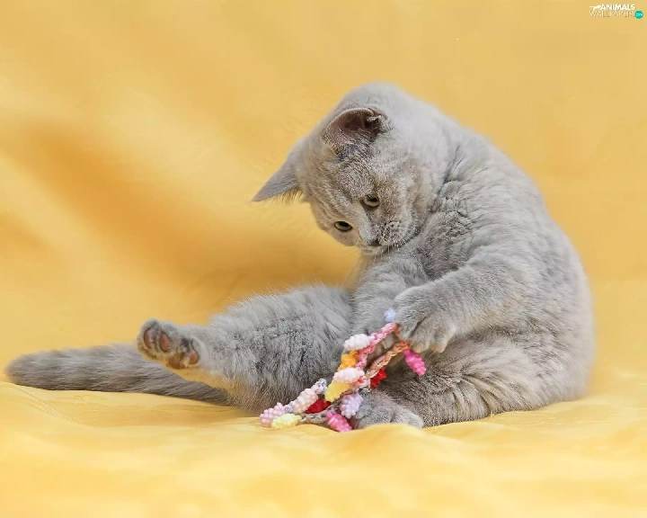 Gray, British, toy, cat