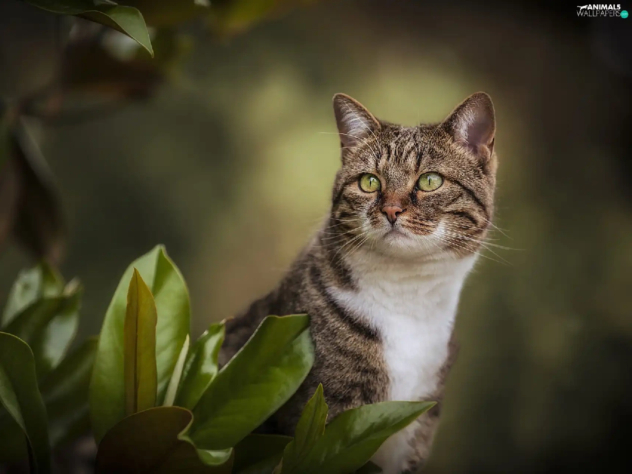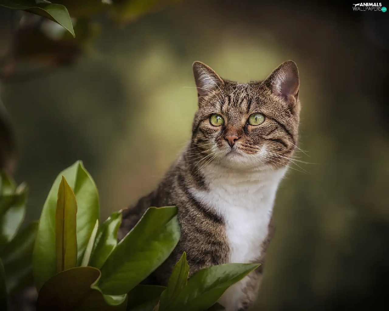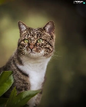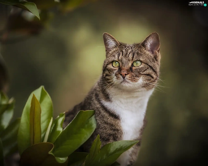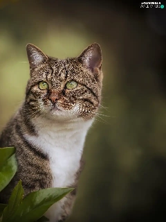 green ones, Grey-White, Leaf, blur, Eyes, cat