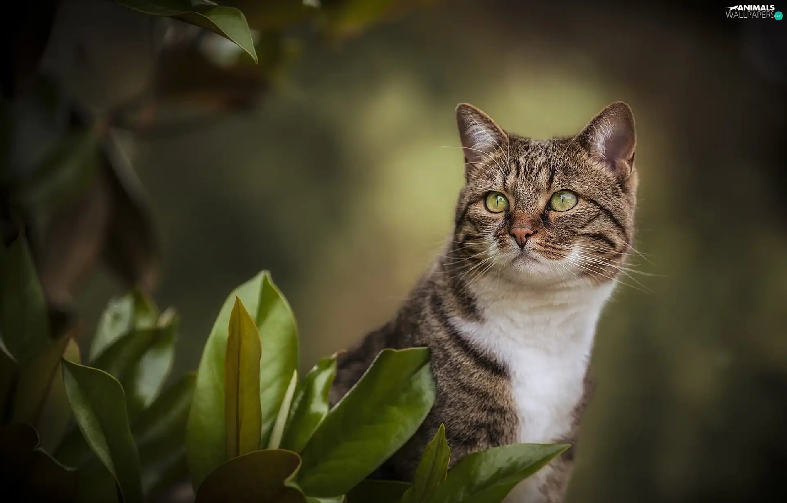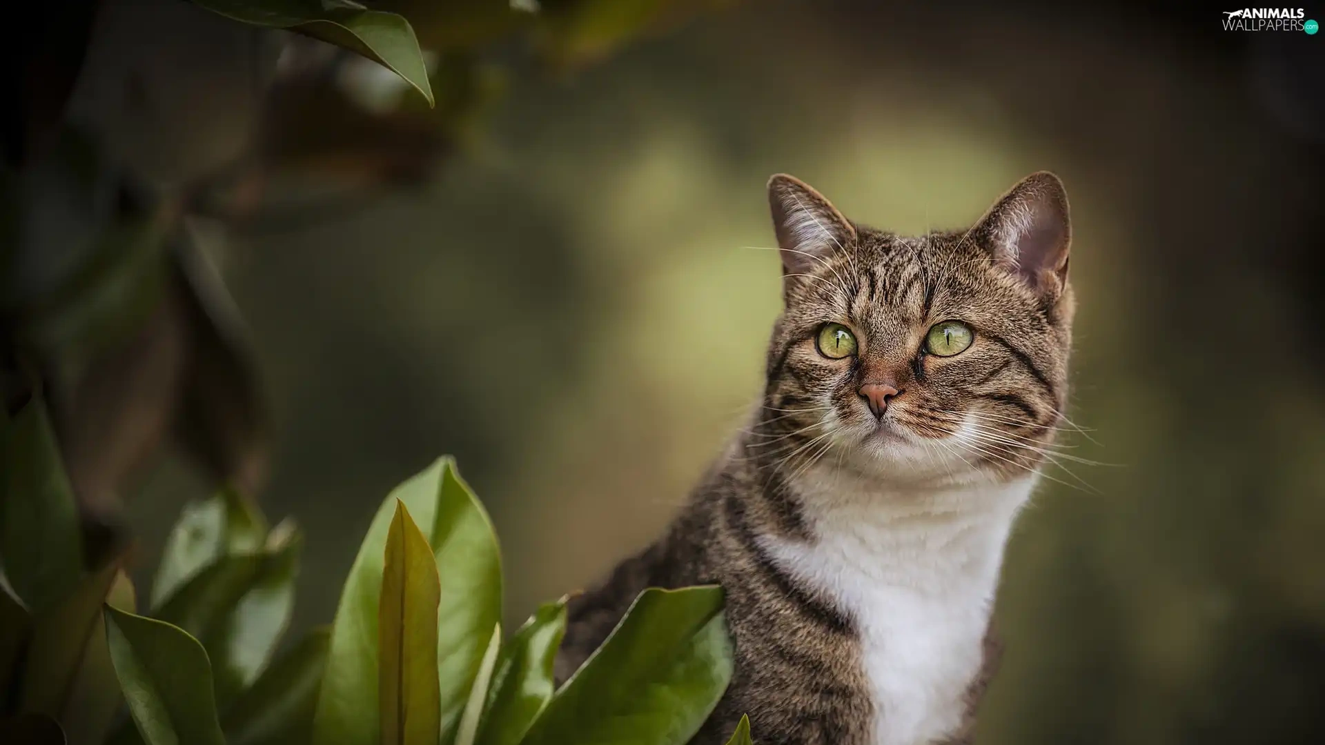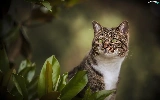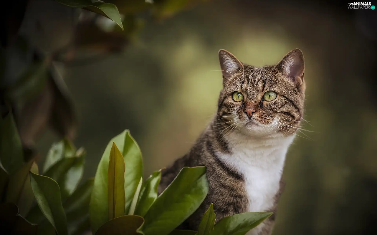 green ones, Grey-White, Leaf, blur, Eyes, cat