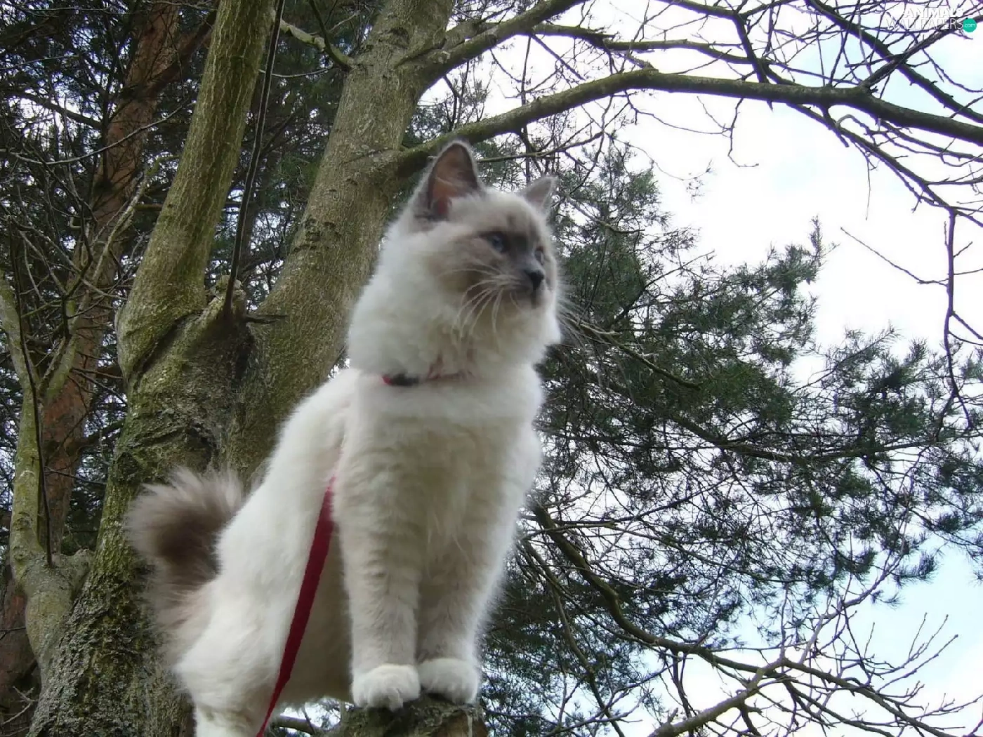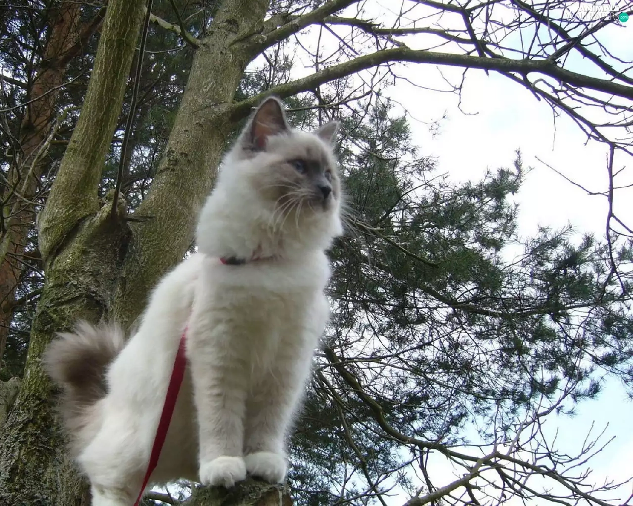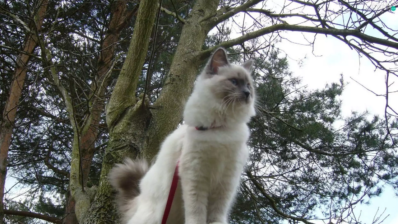 trees, cat, Leash, branch pics