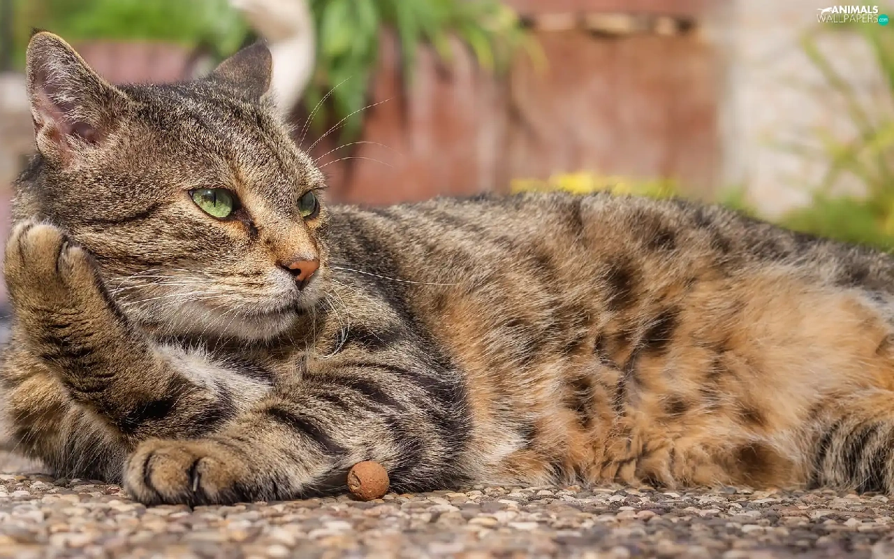 green ones, Eyes, cat, dun, lying