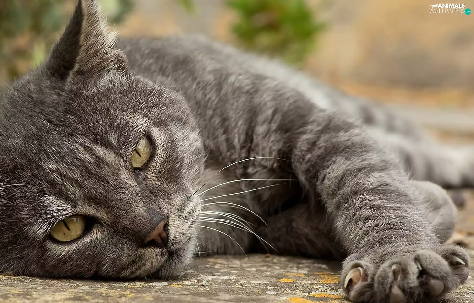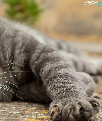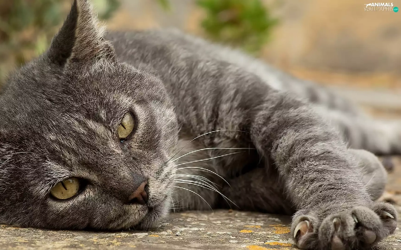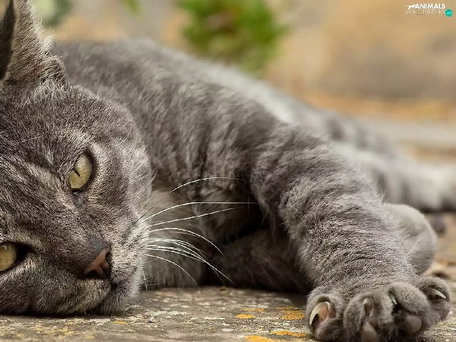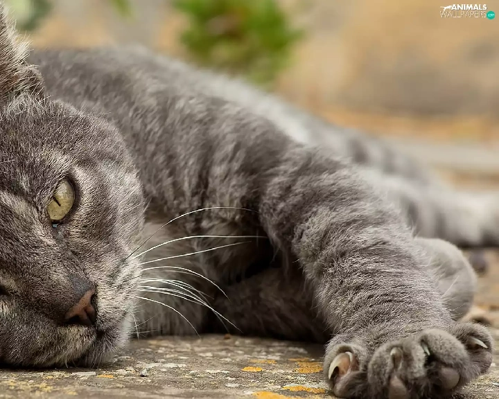 lying, mouth, paw, cat