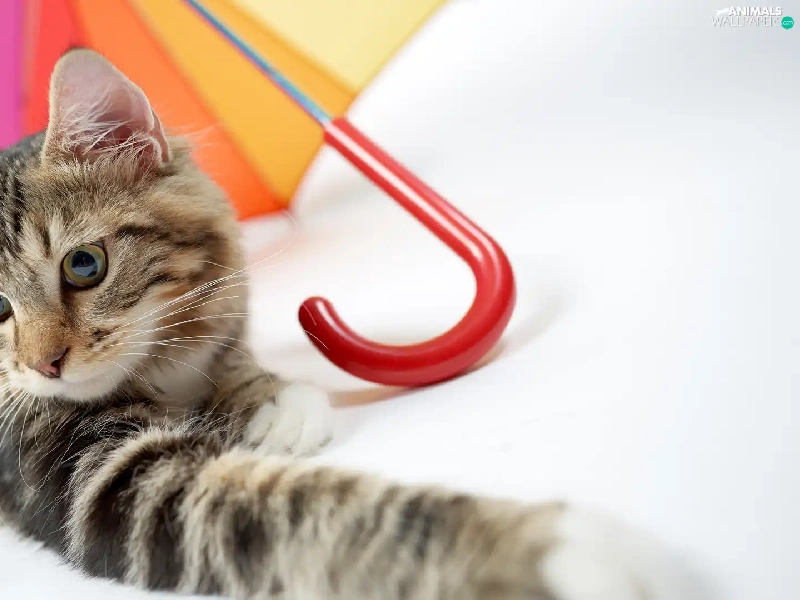 lying, Coloured, umbrella, cat