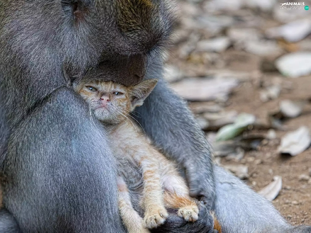Monkey, unusual, friendship, cat