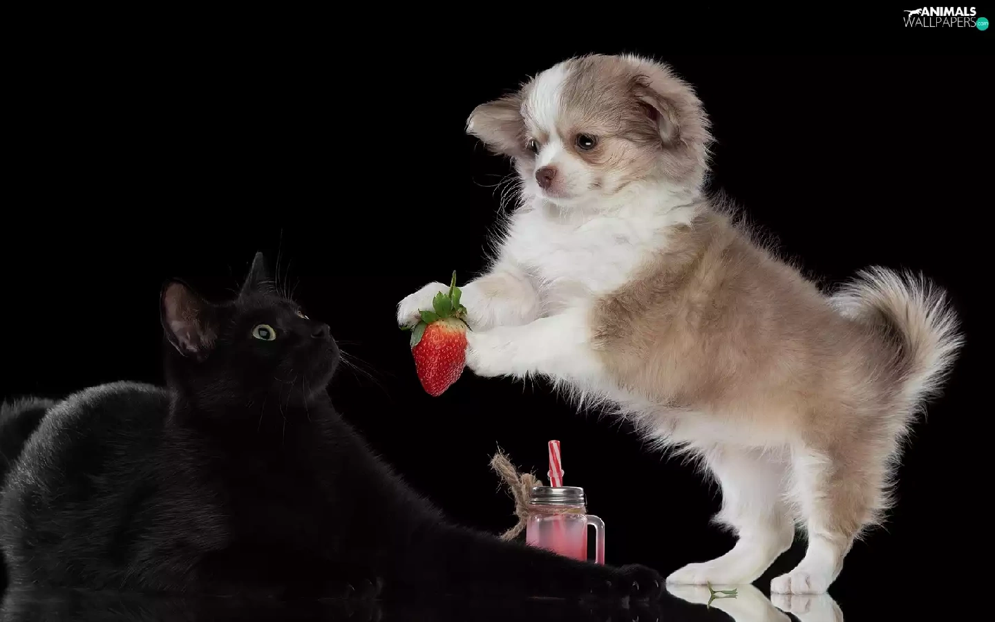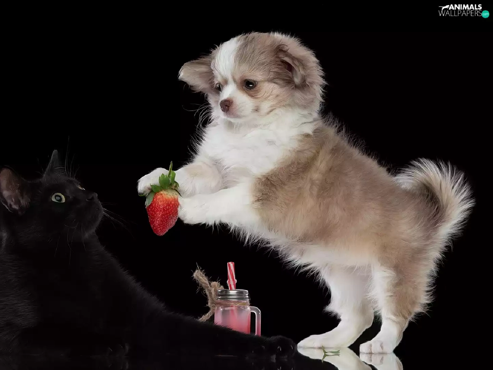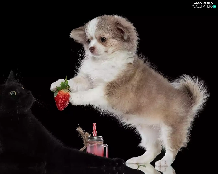 Black, cat, Puppy, Strawberry, dog