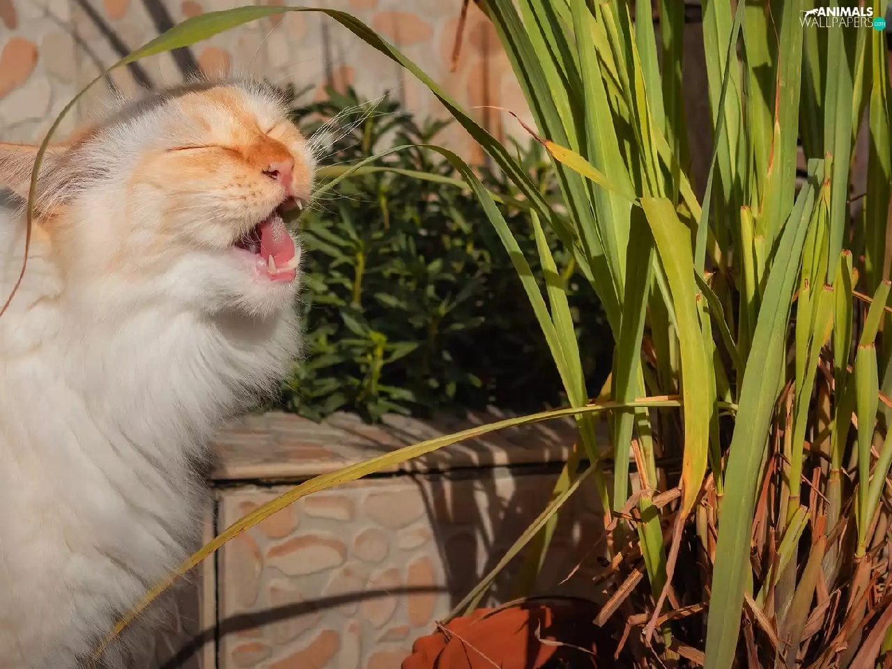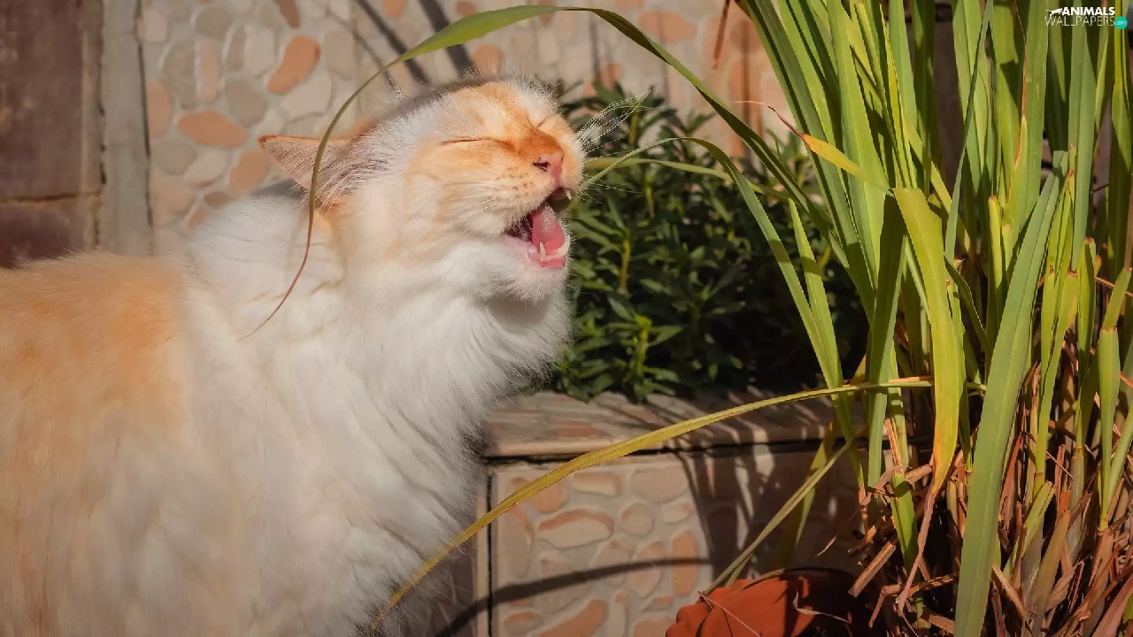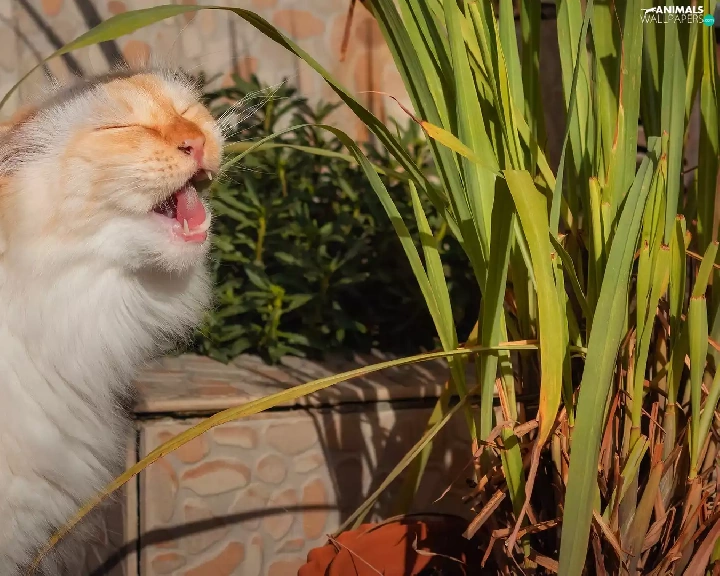 Reddish, plant, pot, cat