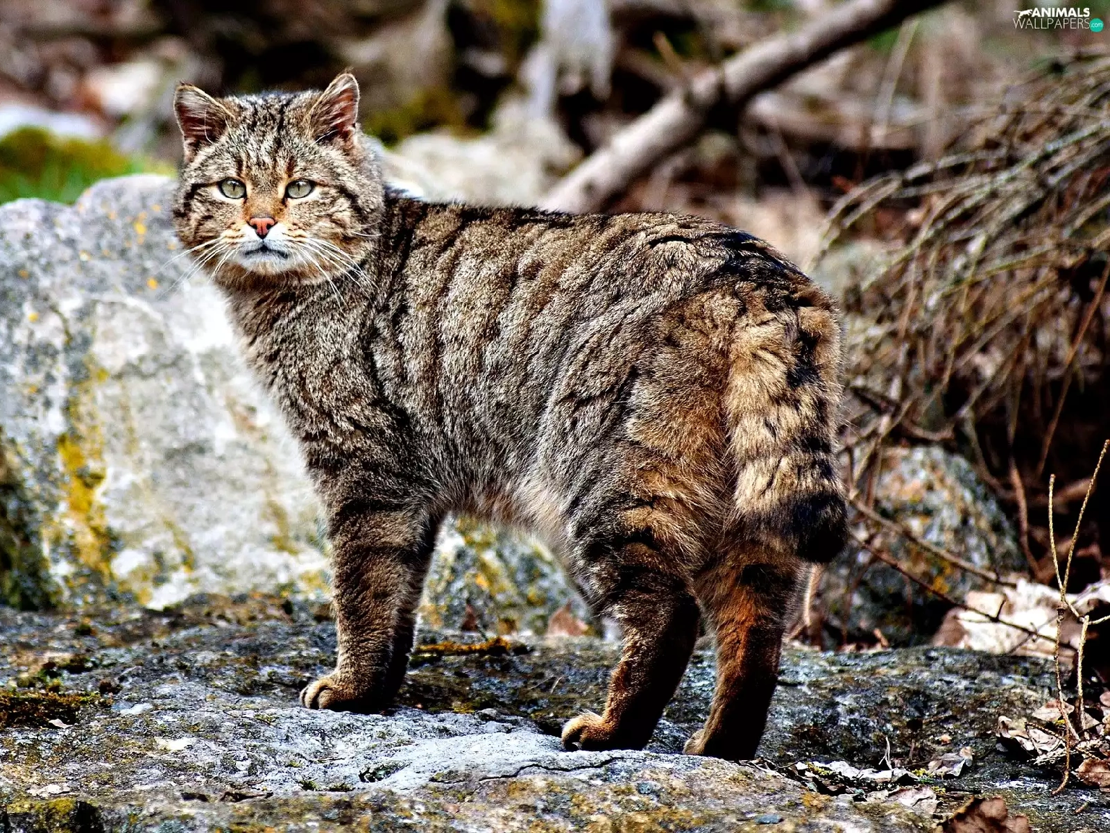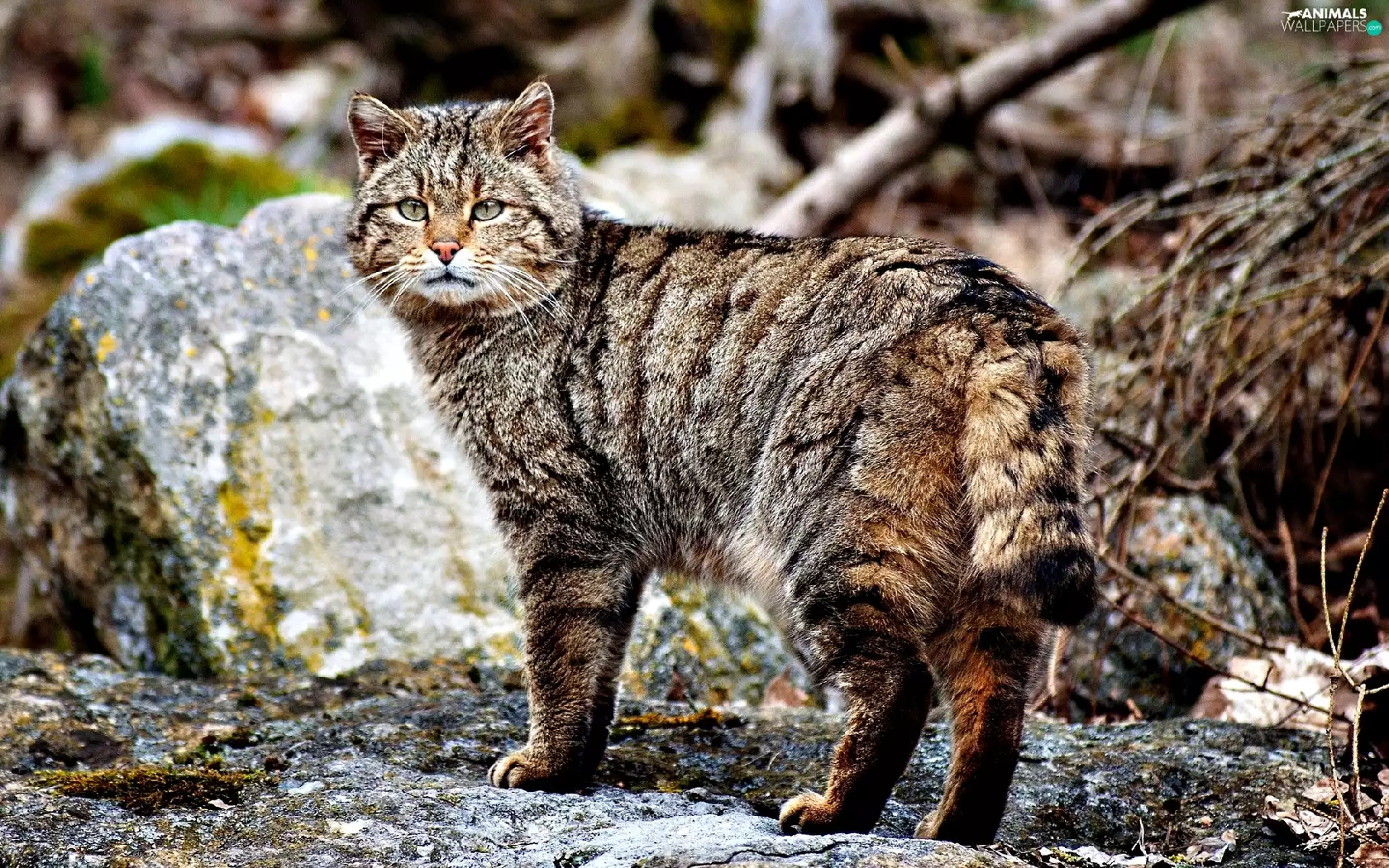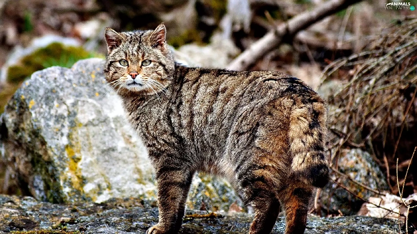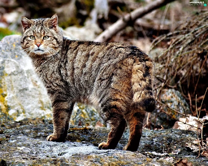 cat, rocks