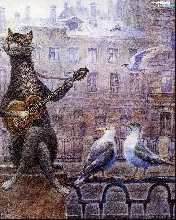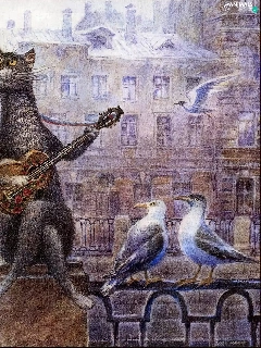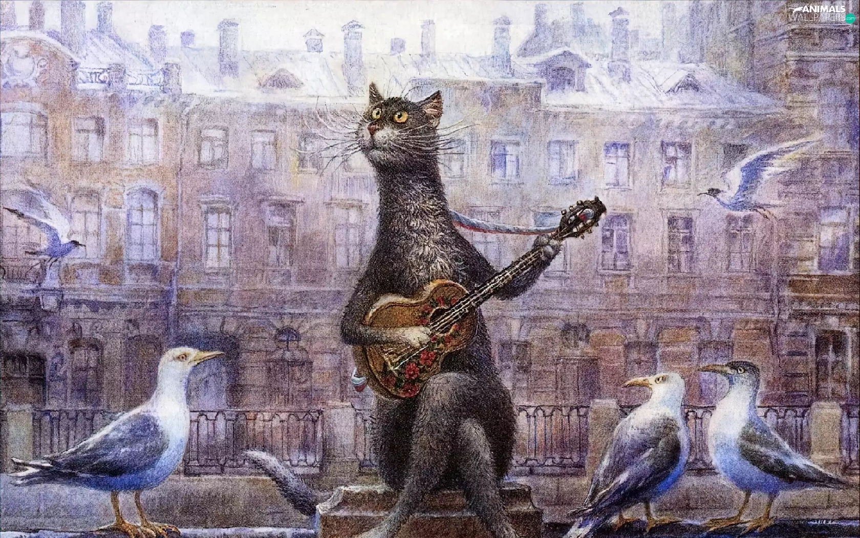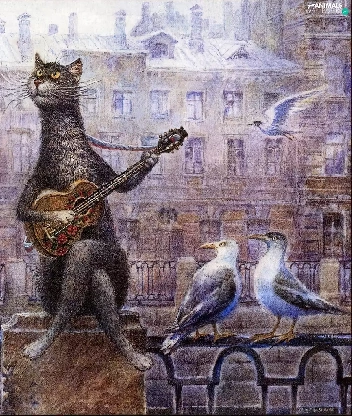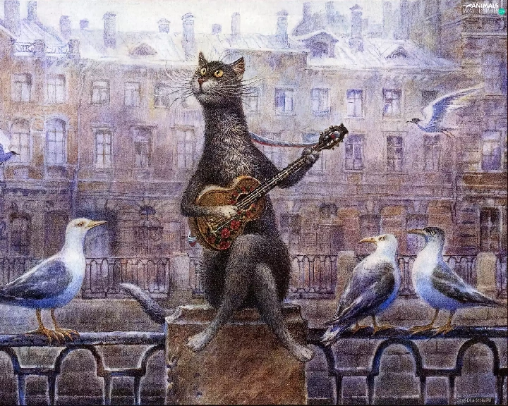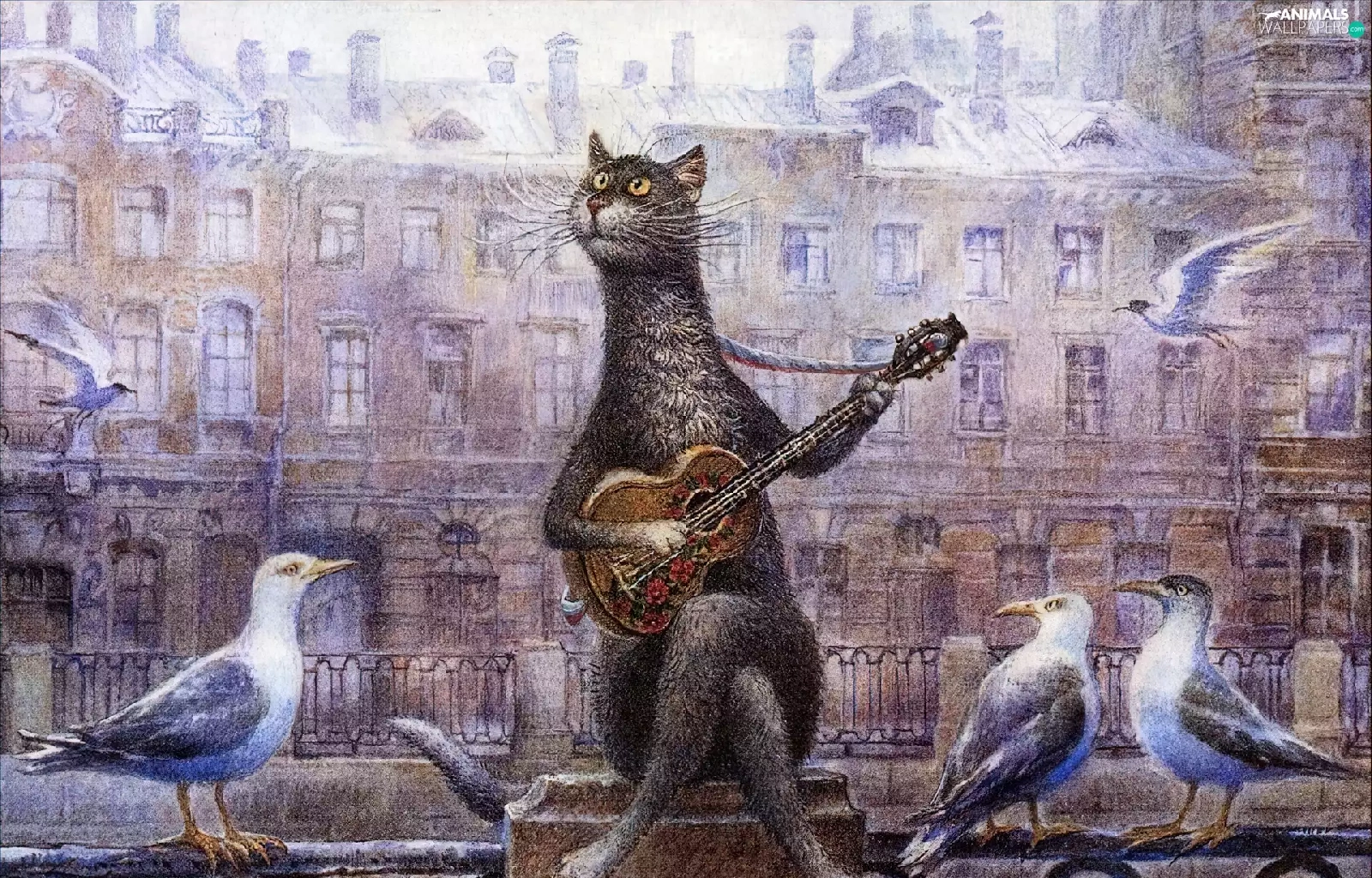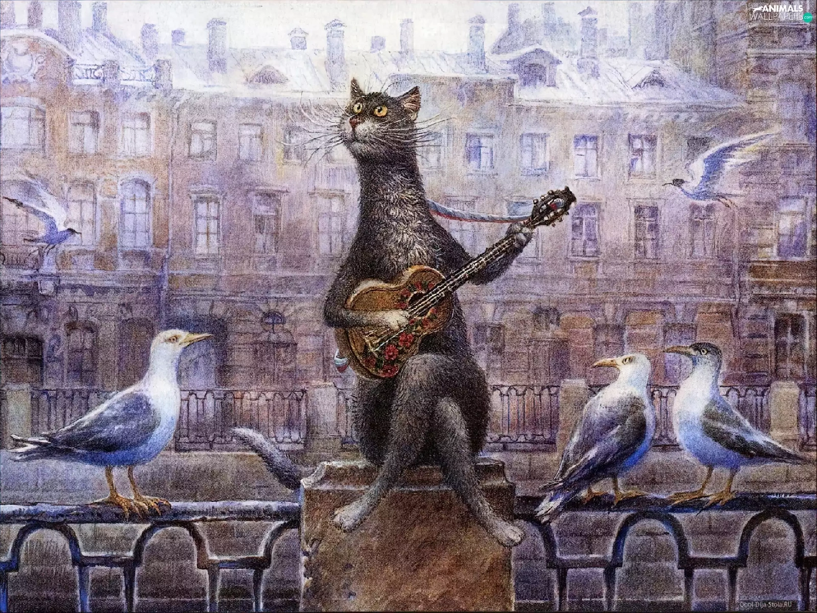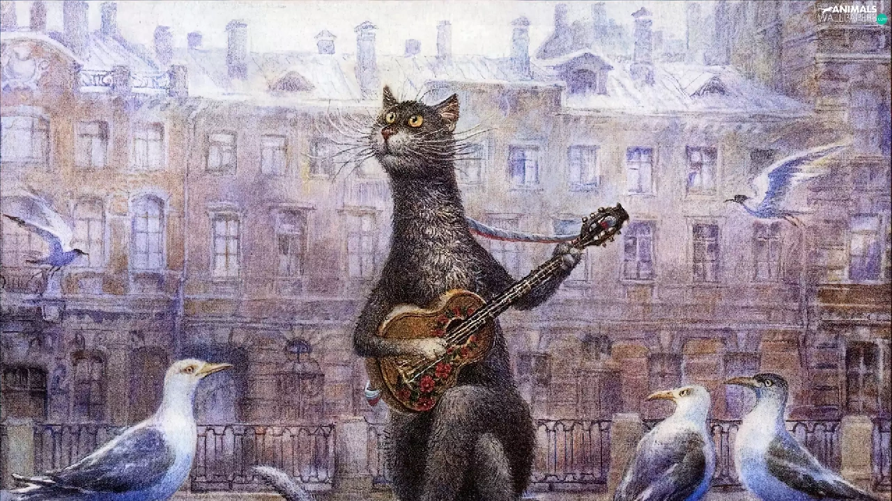 Guitar, Deep, picture, cat, włodzimierz rumiancev