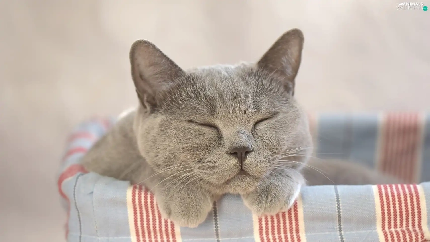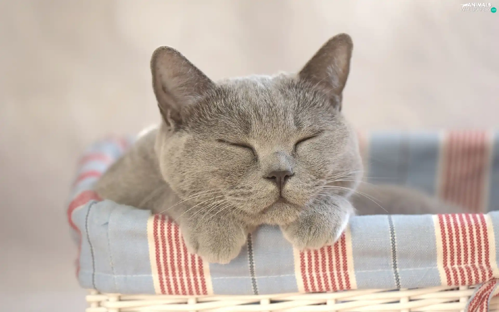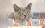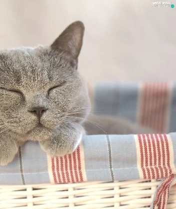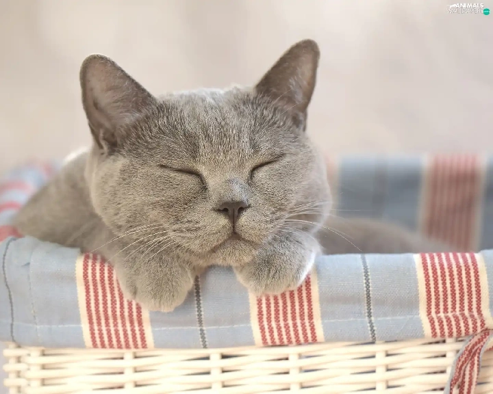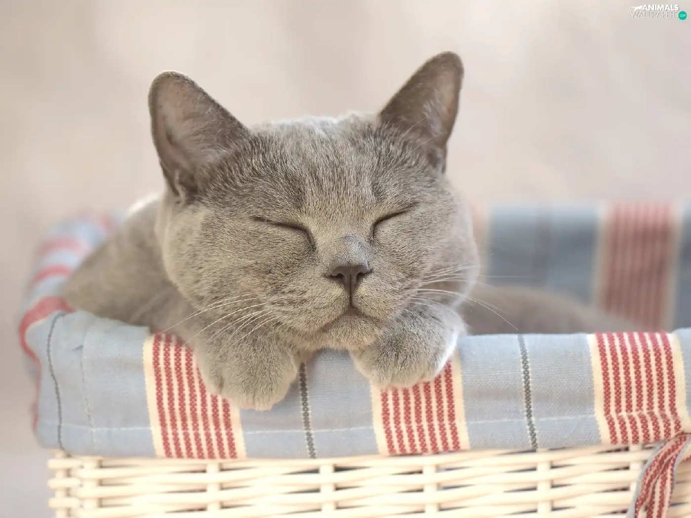sleepy, wicker, basket, cat