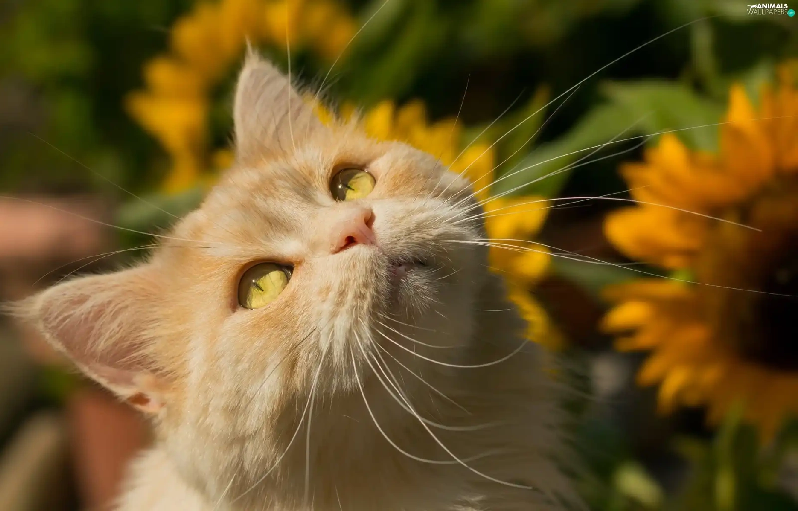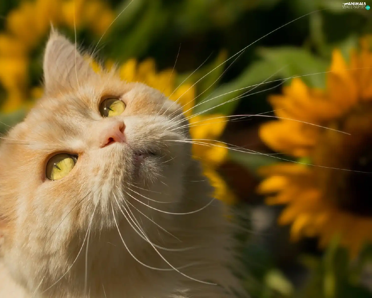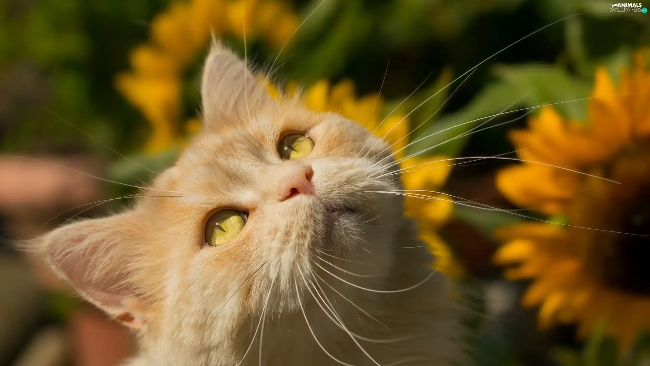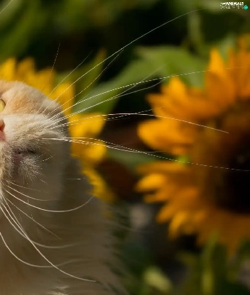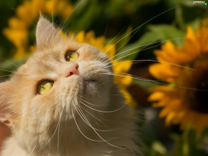 Nice sunflowers, ginger, cat